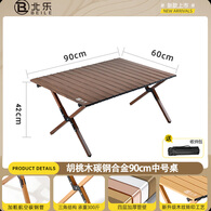 北乐户外便携式露营蛋卷桌可折叠桌椅子野餐摆摊桌椅野营野炊装备套装 胡桃木色中号【90cm】
