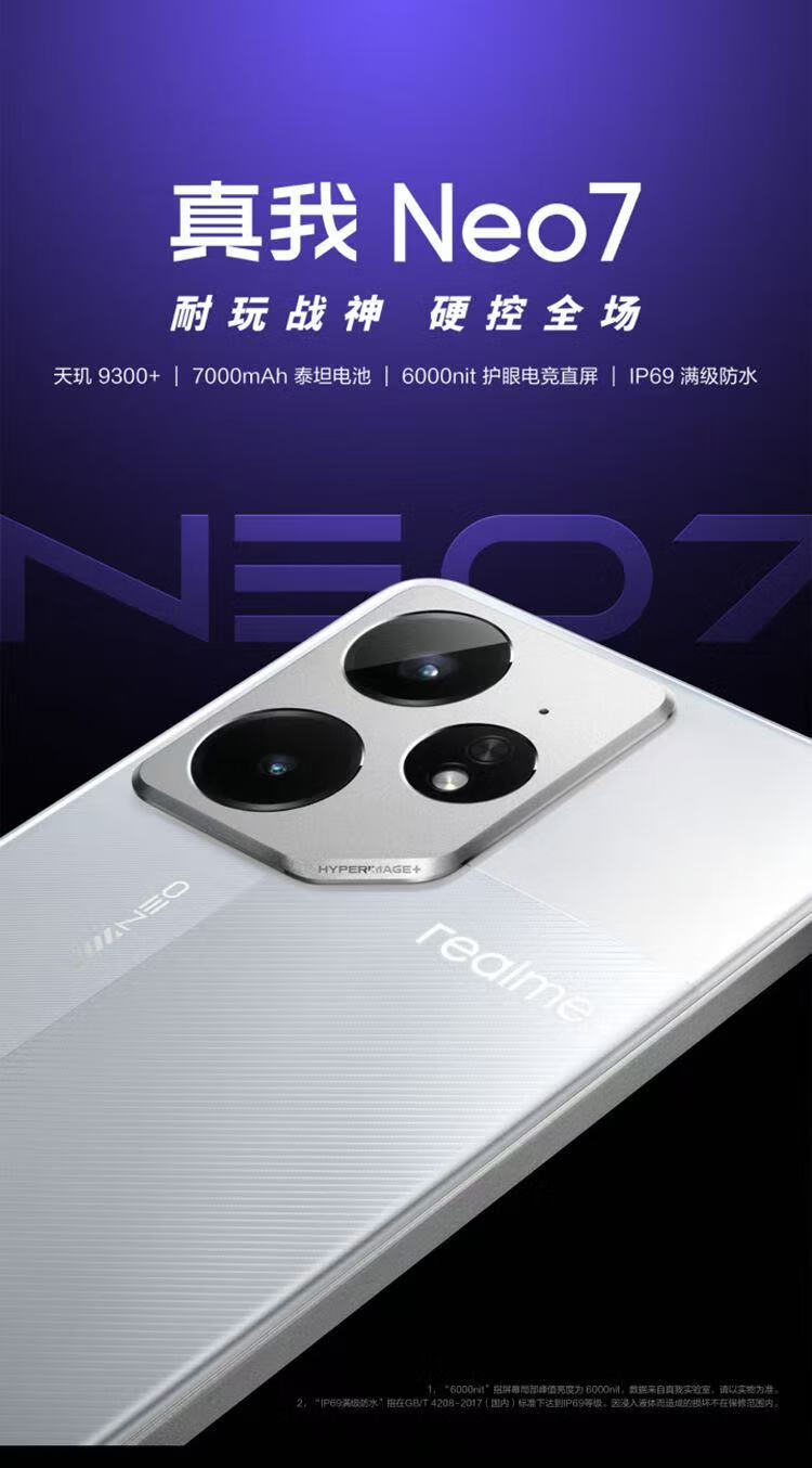 真我Neo7 天玑9300+旗舰芯 7000mAh电池展机 6000nit护眼电竞直屏手机 星舰 12GB+512GB 单机+适配原装快充+店保一年