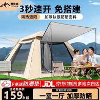 野徒者帐篷户外露营防雨过夜全自动速开便捷天幕二合一防晒沙滩野营装备 3-5人款【帐篷+防潮垫】 门厅款+免搭建速开