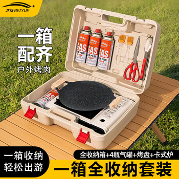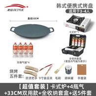 北岳户外烤盘麦饭石卡式炉烤肉盘韩式铁板烧烤盘家用电磁炉烤肉锅煎盘 [超划算】炉+4气+33cm双用款+箱