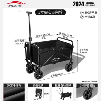 北岳露营推车可折叠户外手推野餐车营地拖车拉杆小拉车桌板烧烤野营车 煤炭黑【轻盈款】5寸万向轮