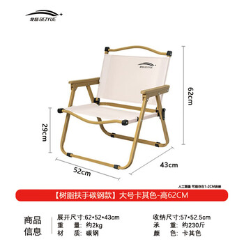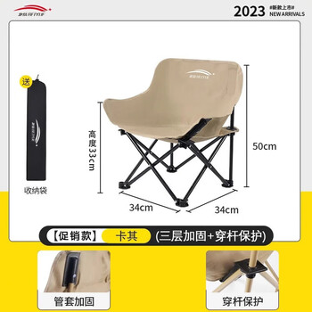 北岳户外折叠椅便携式月亮椅露营椅子野餐桌椅沙滩椅钓鱼椅小马扎凳子 【促销儿童款卡其色】成人一般也可坐