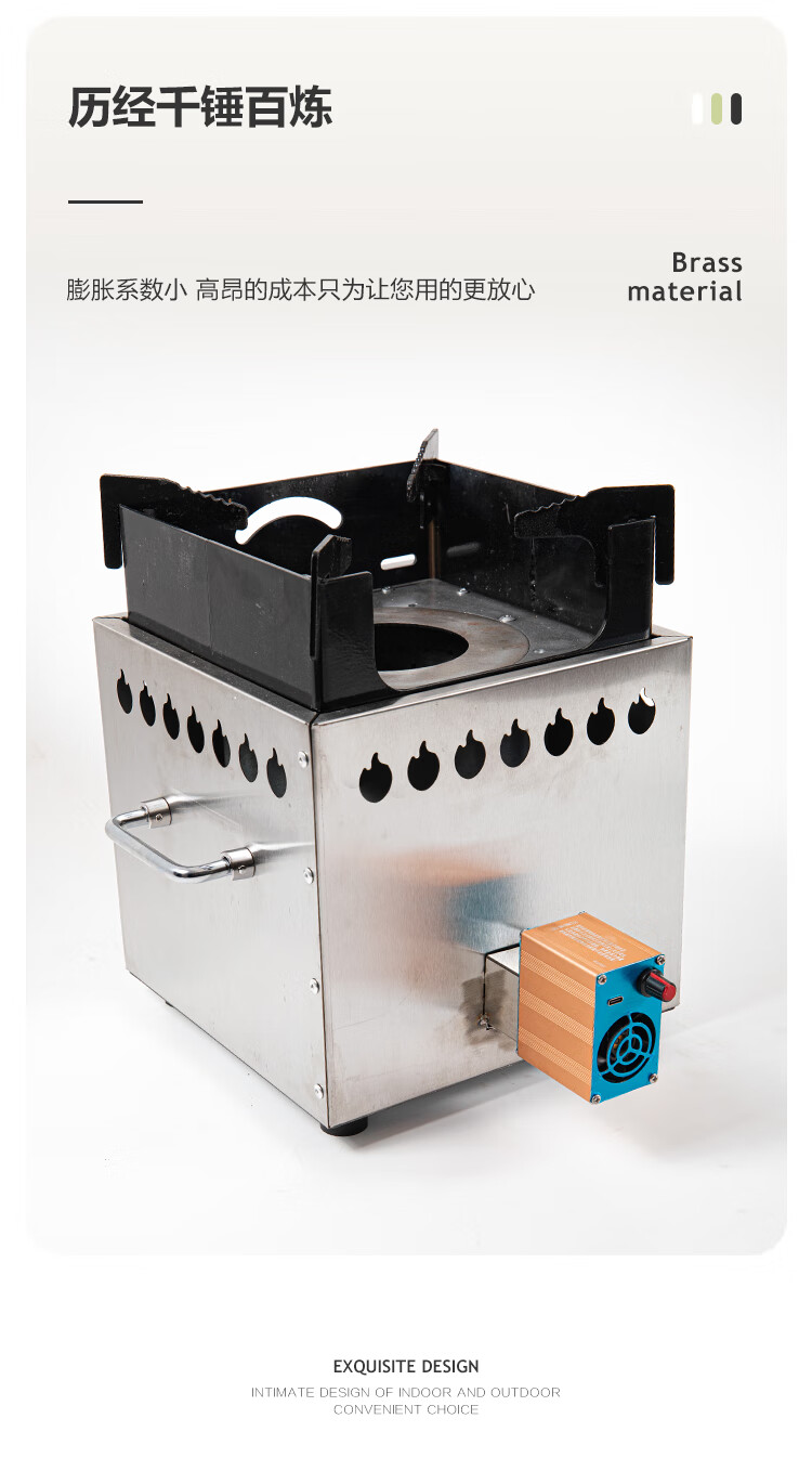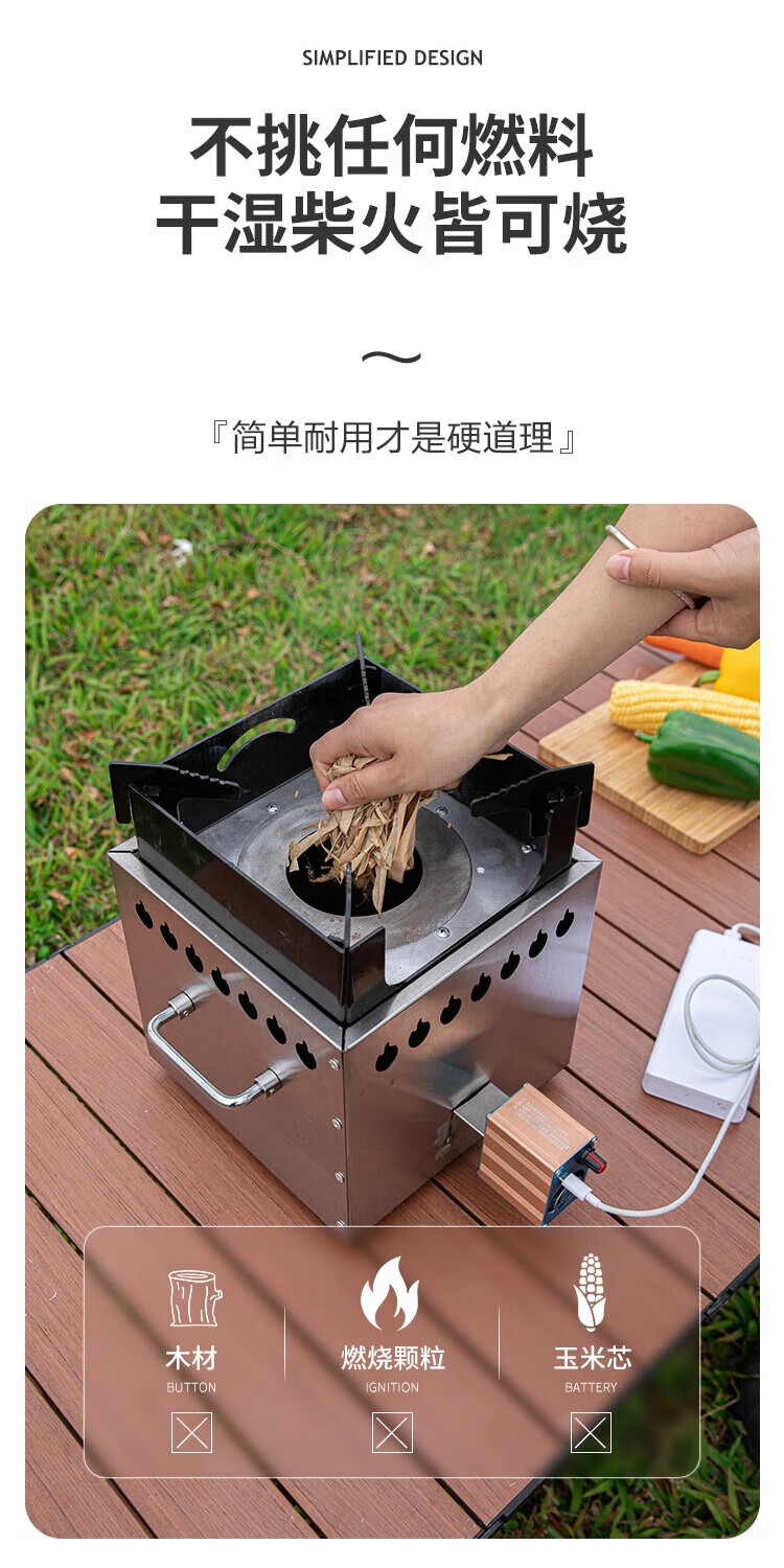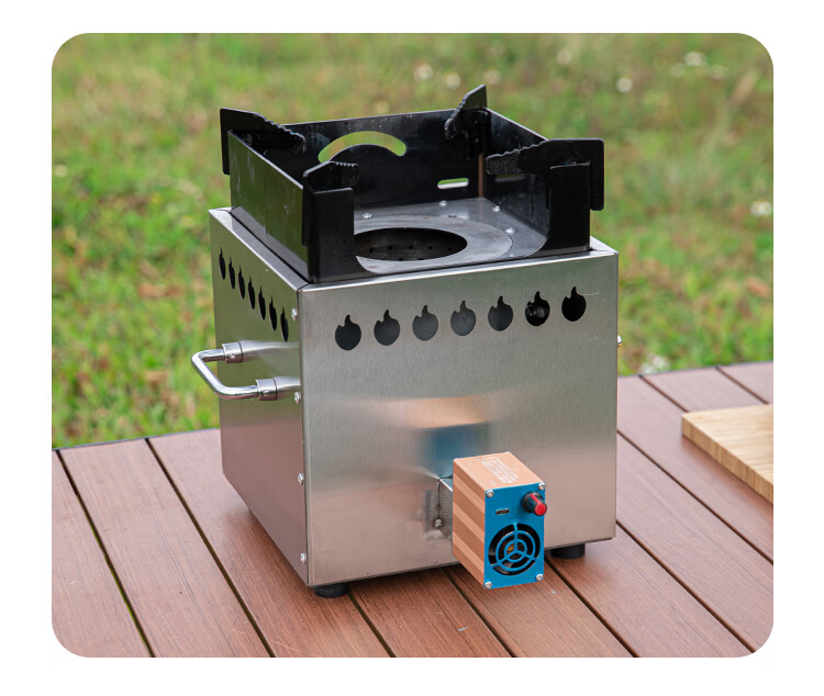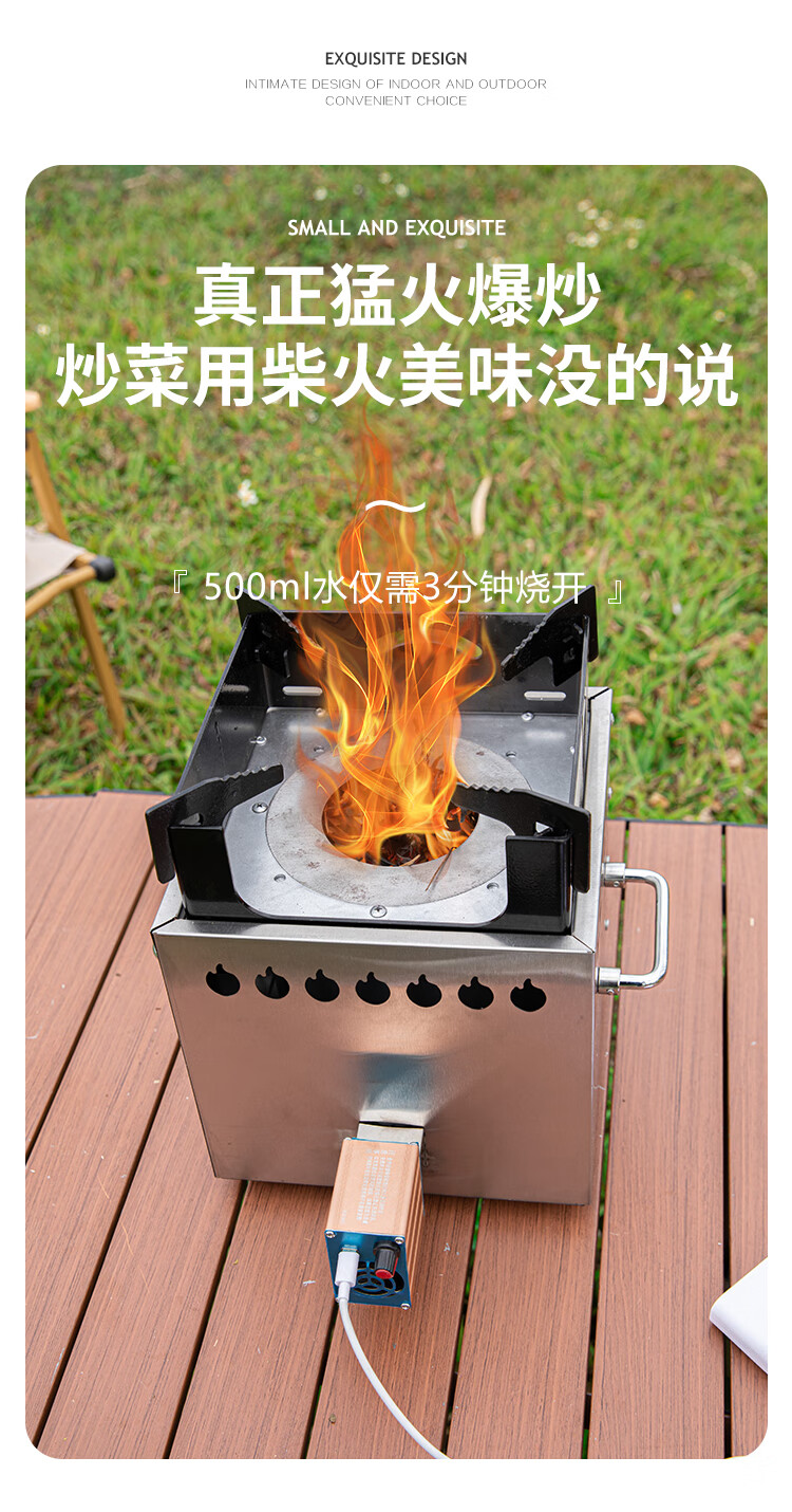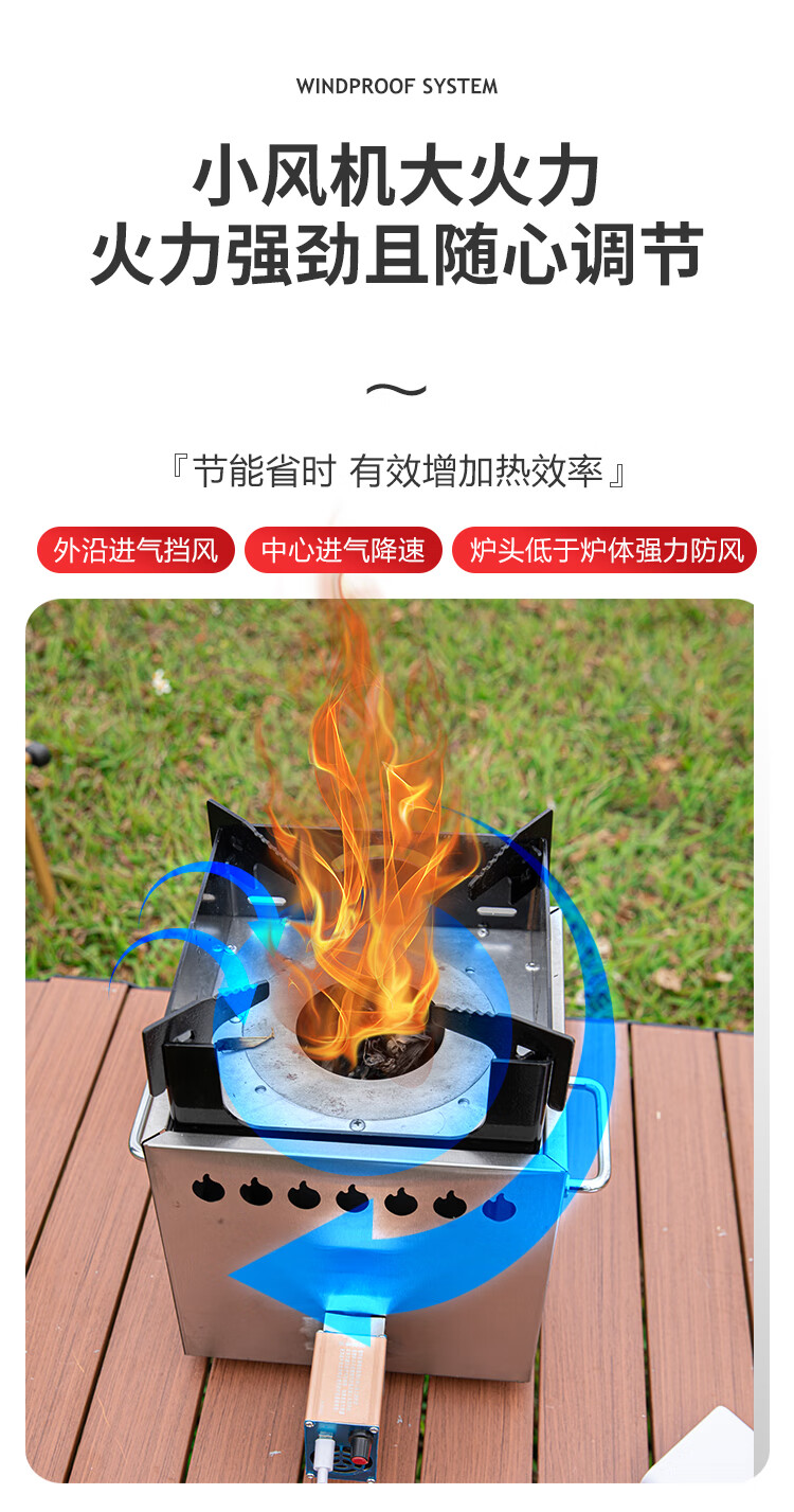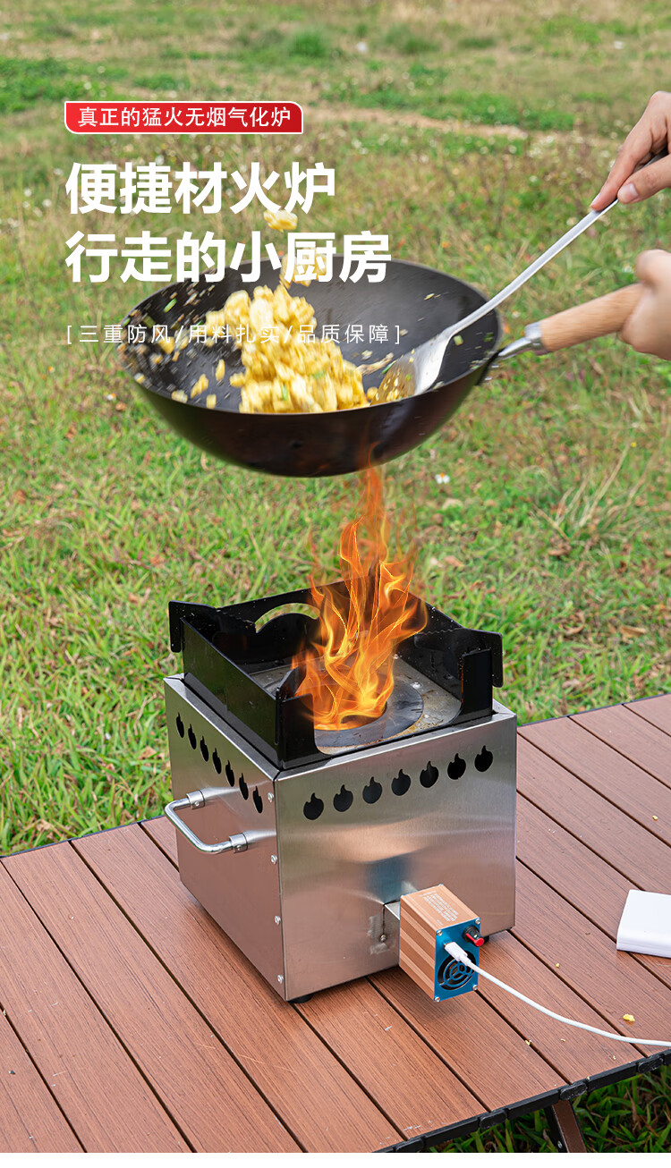 畅杰1327人便携式柴火加厚火炉无烟气化炉露营野炊家用两 一体猛火炉+风机