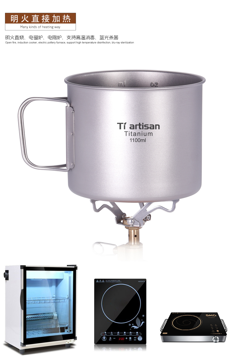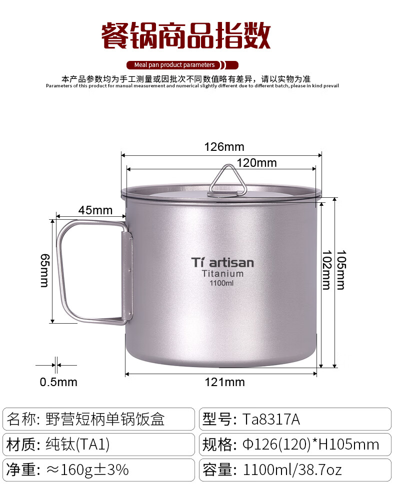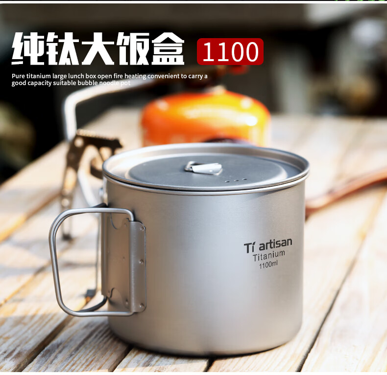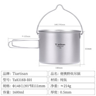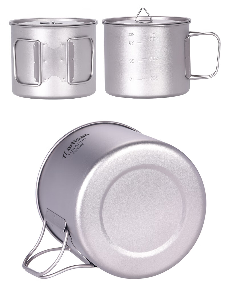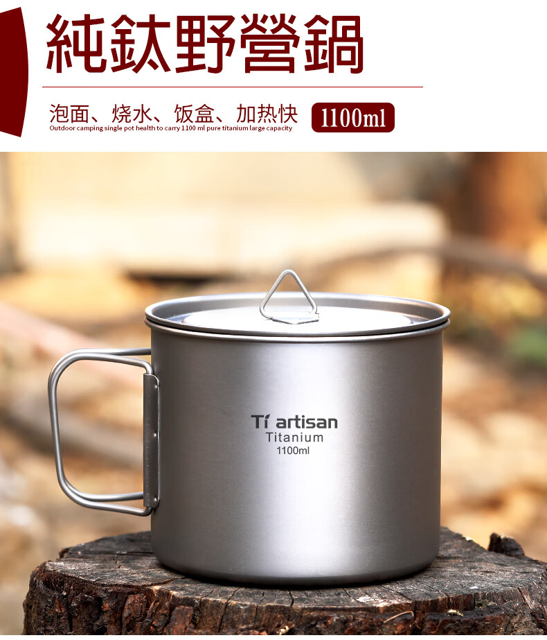 Ti artisan钛工匠野营单锅吊锅纯钛金属锅具单人泡面锅烧汤锅便携钛锅炊具 Ta8317A钛杯短柄1100ml