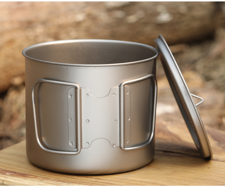Ti artisan钛工匠户外纯钛杯子钛咖啡杯折叠把手便携金属钛水杯带盖750ML