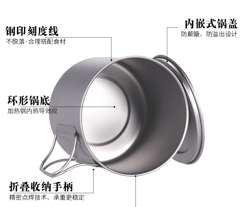 必唯(BOUNDLESS VOYAGE) 必唯纯钛套锅户外锅具便携露营汤锅泡面锅野营炒锅炊具火锅 Ti2110C 1200ML+500ML