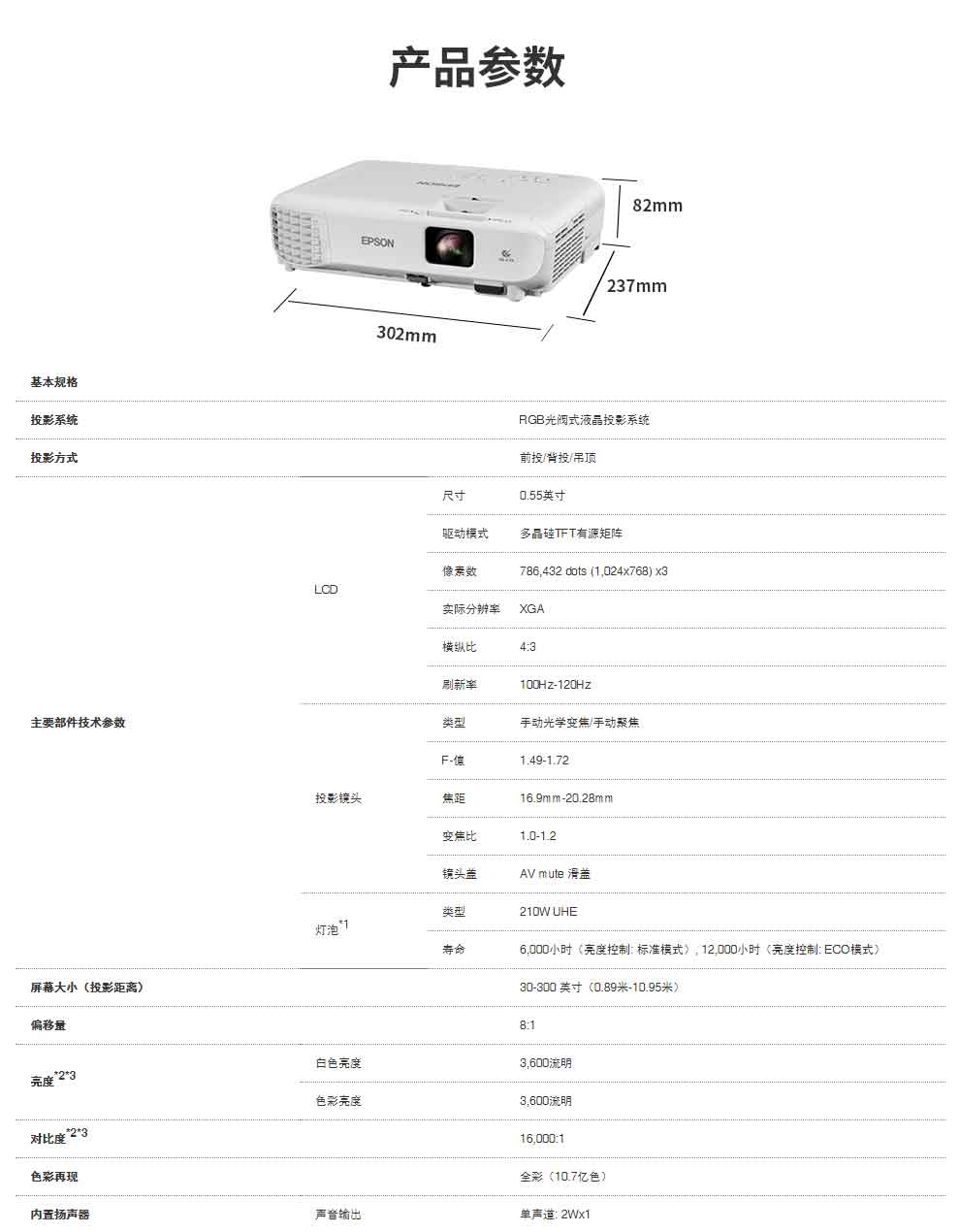 爱普生(EPSON)Epson/爱普生CB-X06 X49W06FH06FH52CB-99高亮商务会议教育投影仪 CB-X06E【3600流明4:3】