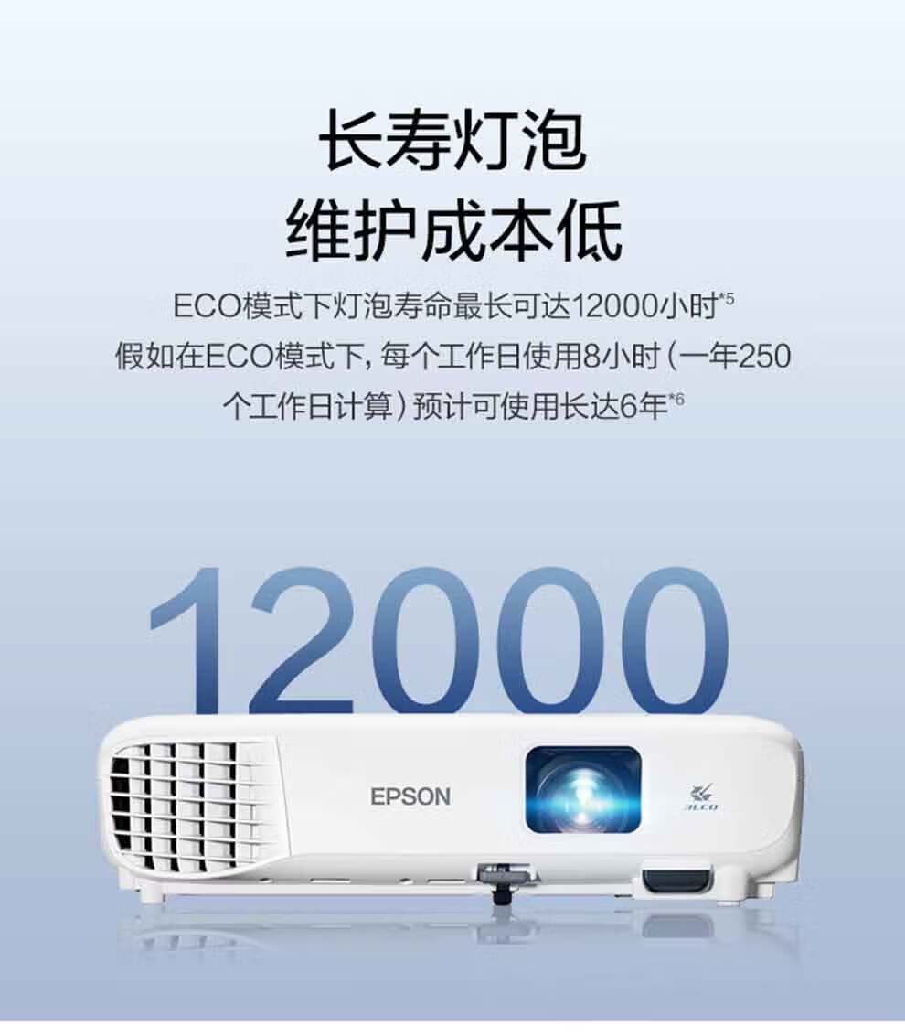 爱普生(EPSON)家用3LCD高清4K无线1080P激光超短焦酒店办公教育工程投影仪 CB-X49(3600流明)仅用200小时