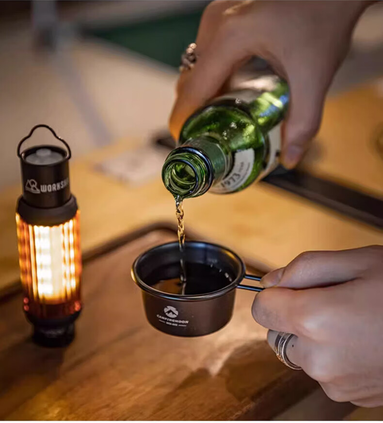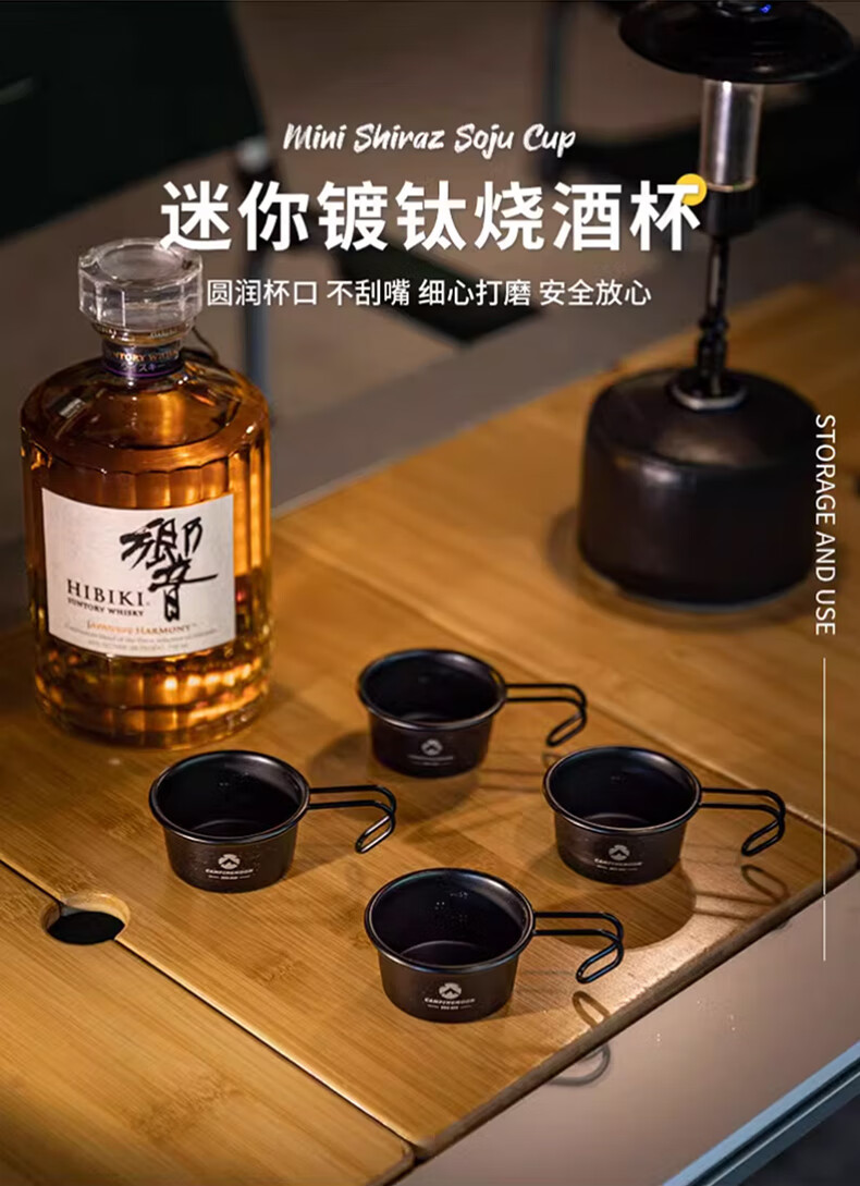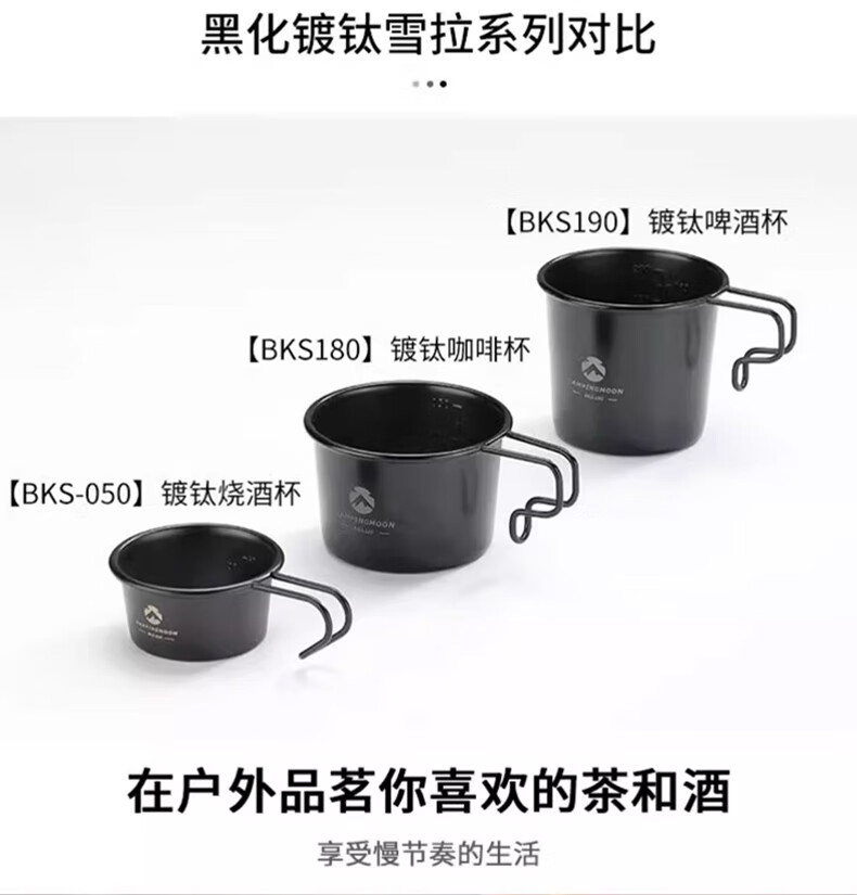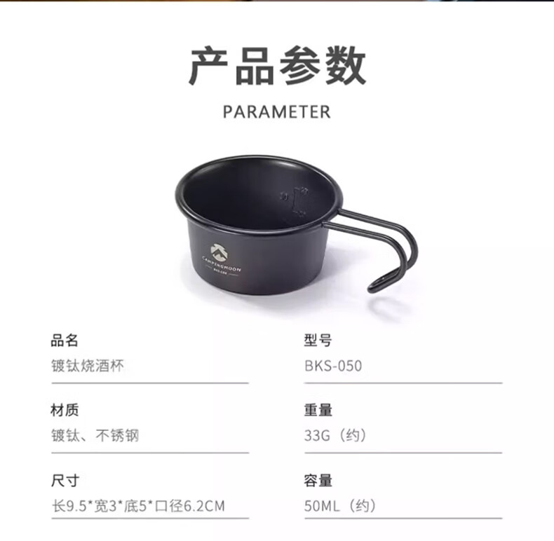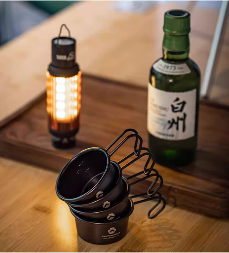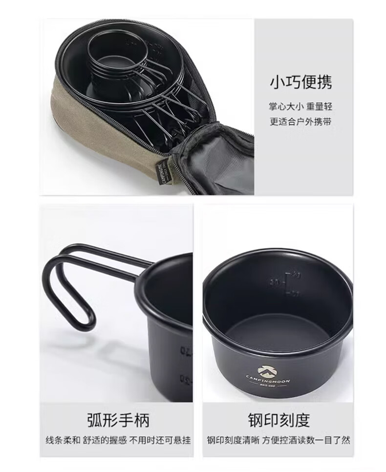 CAMPINGMOON柯曼黑色镀钛白酒杯户外便携不锈钢材质野餐聚会小酒杯多用途茶杯 【S180-B】雪拉酒杯收纳包
