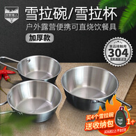 荒野猎人 WILD HUNTER304不锈钢雪拉碗韩式米酒碗户外餐具露营便携雪拉杯可直烧炊具 小号304雪拉碗(银色)