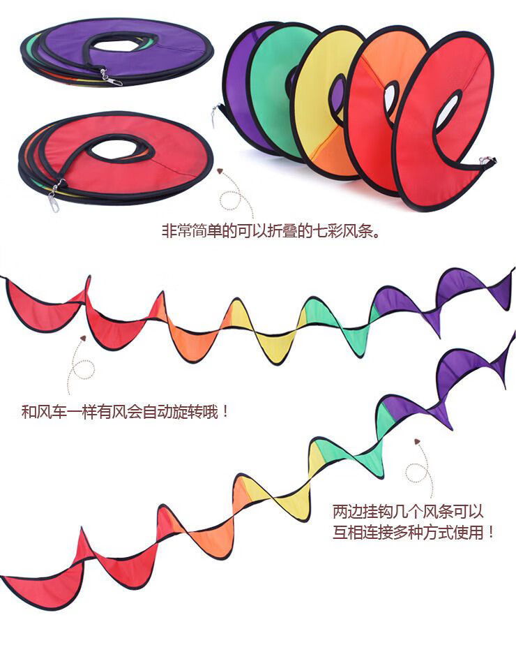 OEMG户外露营装饰帐篷风绳防绊倒警示灯条天幕挂件氛围彩旗装备用品 1.6米长七彩旋转风简【1】