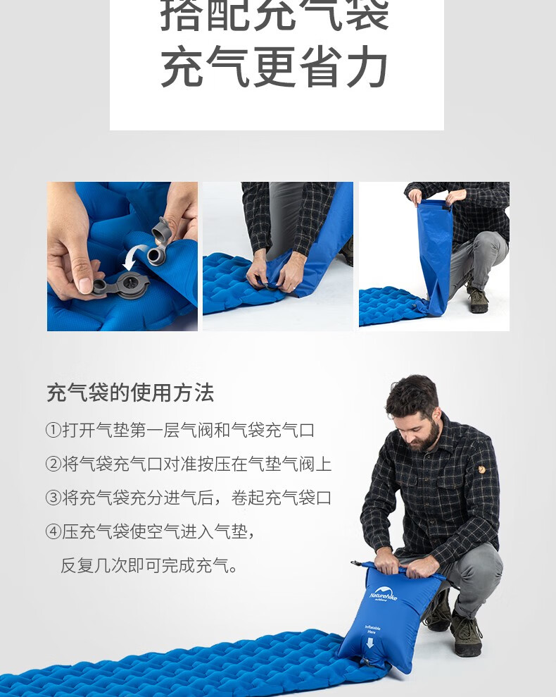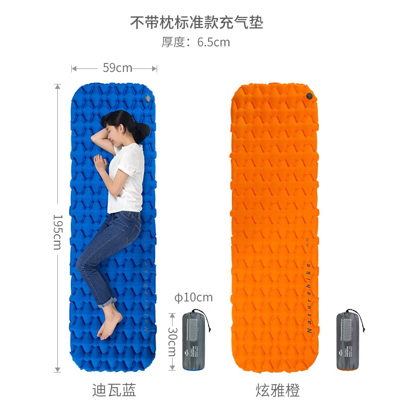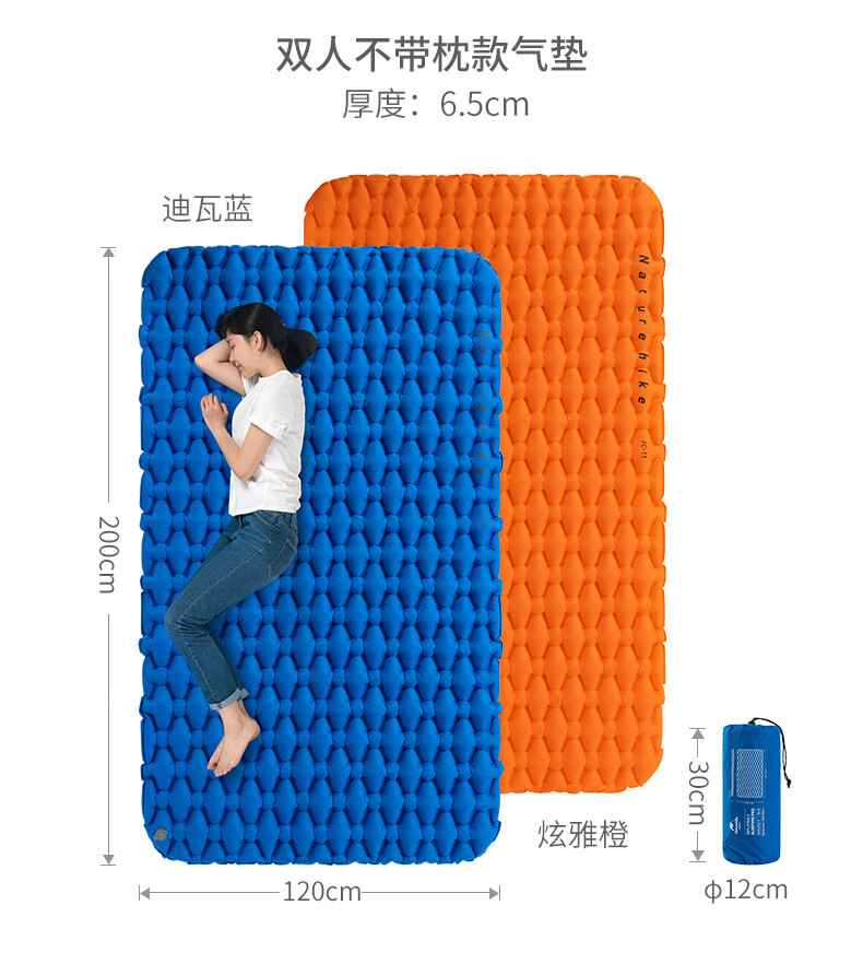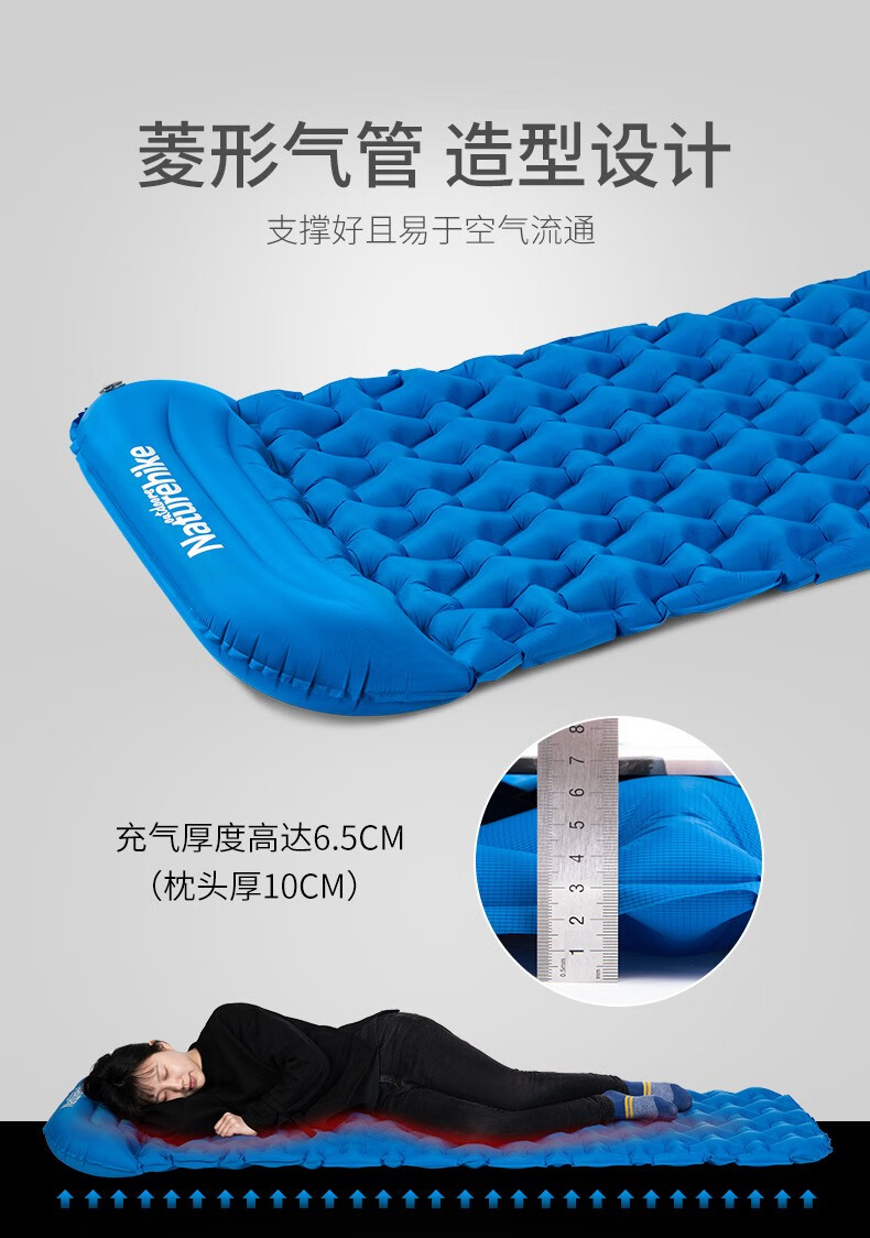 NatureHike挪客超轻充气垫 户外帐篷睡垫 单人便携露营加厚防潮垫打地铺 迪瓦蓝单人气垫
