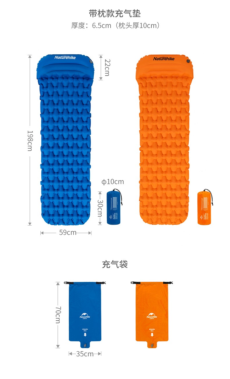 疫情原因没时间去线下购买,直接在线上定了,看上这款收纳有的尺寸,相比其他款要小一半还多,到手以后非常满意,首先厚度不要有太多预期还是相对薄一些,但充满气以后160斤的体重也没让我掉地上,承重能力还是很强的。打气的过程也很顺利,可以直接用嘴吹,但到后面压力大了,用配的风袋就方便了很多,放气也同样很方便,总的来说放在车里用,很满意。
