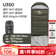 Naturehike挪客睡袋成人户外露营超轻秋冬棉睡袋 办公室内午休加厚防寒被子 中空棉-艾叶青U350+送充气枕