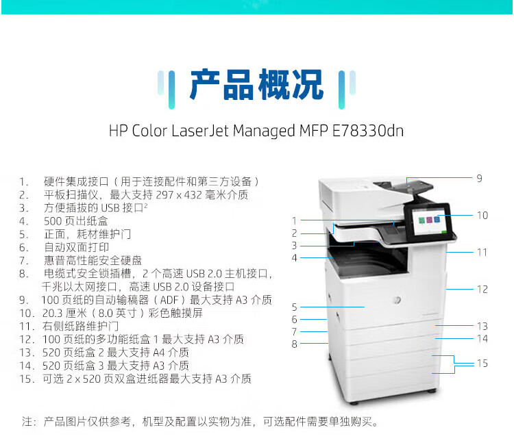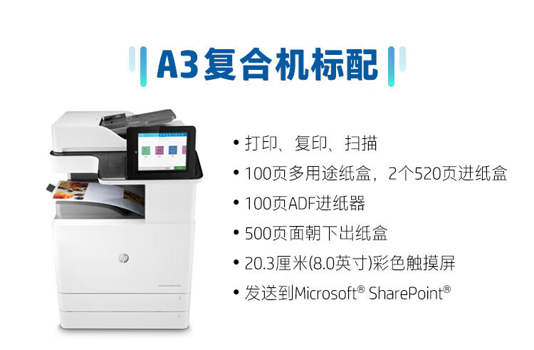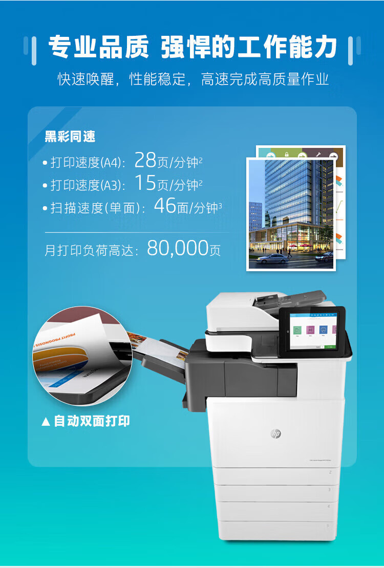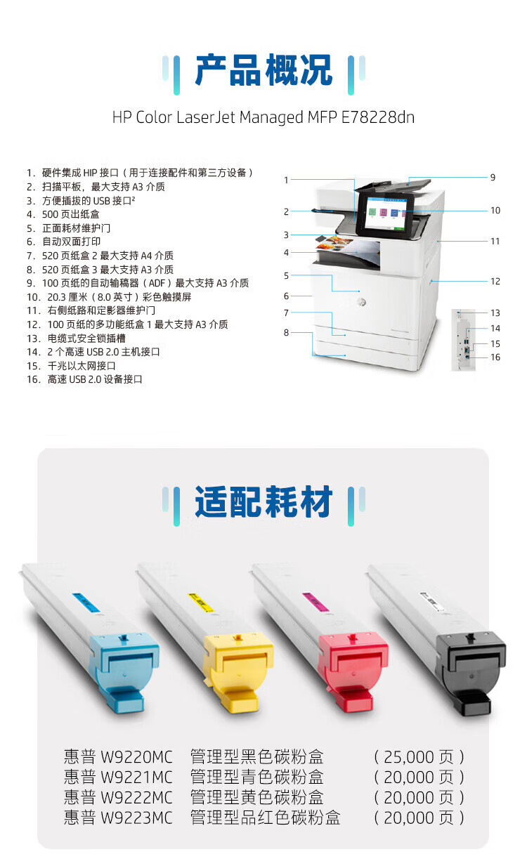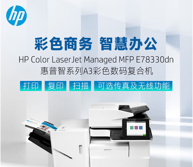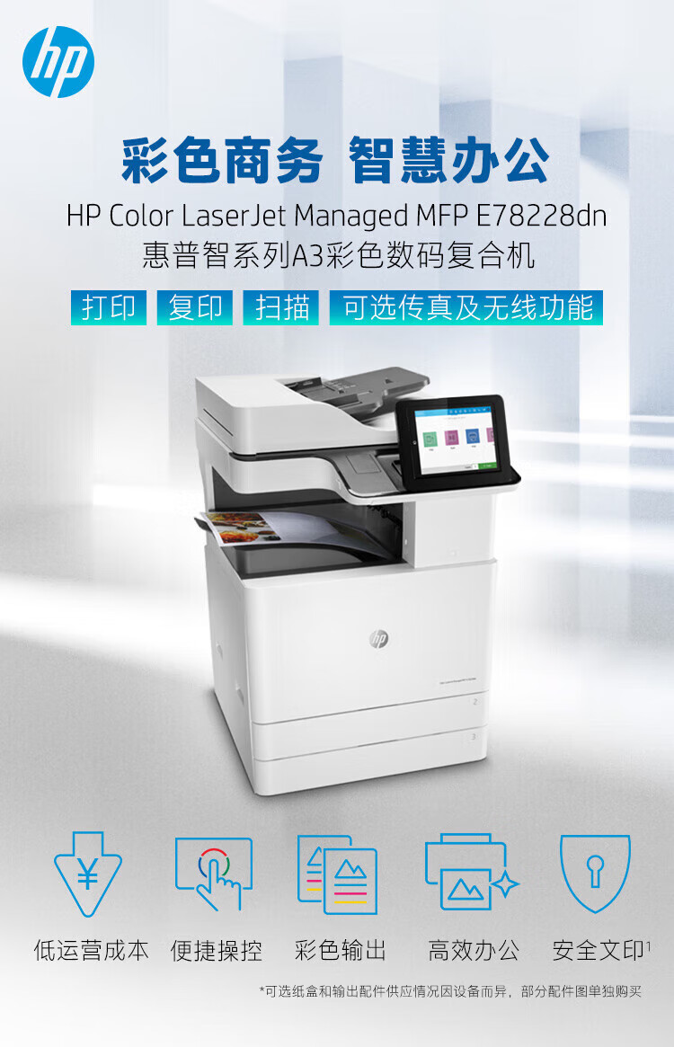 惠普(HP)E78523/E78528dn A3/a4彩色激光打印机 大型商务办公三合一复合机 【A3复合机】E77822dn 全新未拆封原装机 多仓现货直发