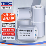 TSC 亚银PET标签打印纸固定资产管理 不干胶条码标签纸哑银消银龙油胶二维码打印机金属配件黏贴防油 50mm*30mm单排-1250张/卷