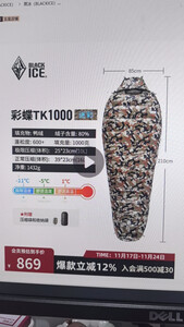 黑冰25春夏新款【彩蝶TK鸭绒木乃伊式羽绒睡袋】户外露营防风成人睡袋 TK400-迷彩 均码