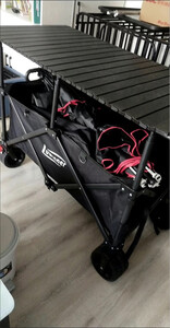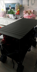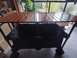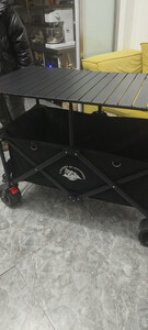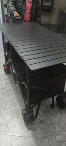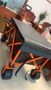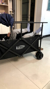 安装的时候随拍的照片,质量不错,售后服务很棒,也很及时,露营车轱辘挺大,车身结实,有桌板有伞以后出去不用再在地上吃喝了,还是比较推荐的,俺家孩子80斤躺桌板上一点事没有我也上去坐了一下直接没问题,总体满意,推荐大家购买