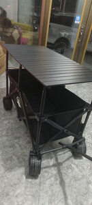 Aoran露营车野营车超大容量折叠推车营地车露营推车户外手推车摆摊推车 【卡其色】加高桌板+后翻带扶手