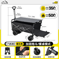 爱山客露营车折叠推车户外装备小推车营地手拉车旅行拖车买菜车拉快递车 350L 暗夜黑-双刹坦克轮+碳钢桌板