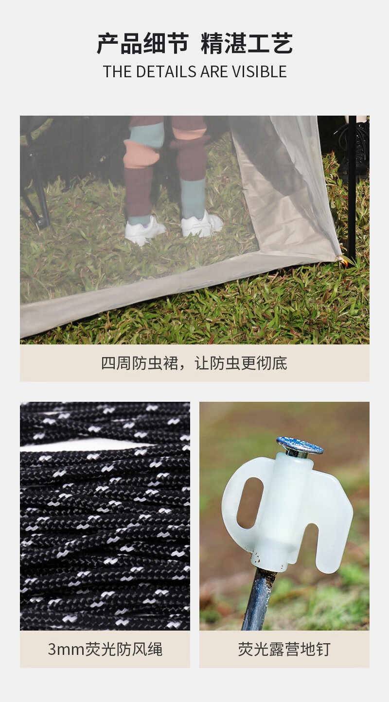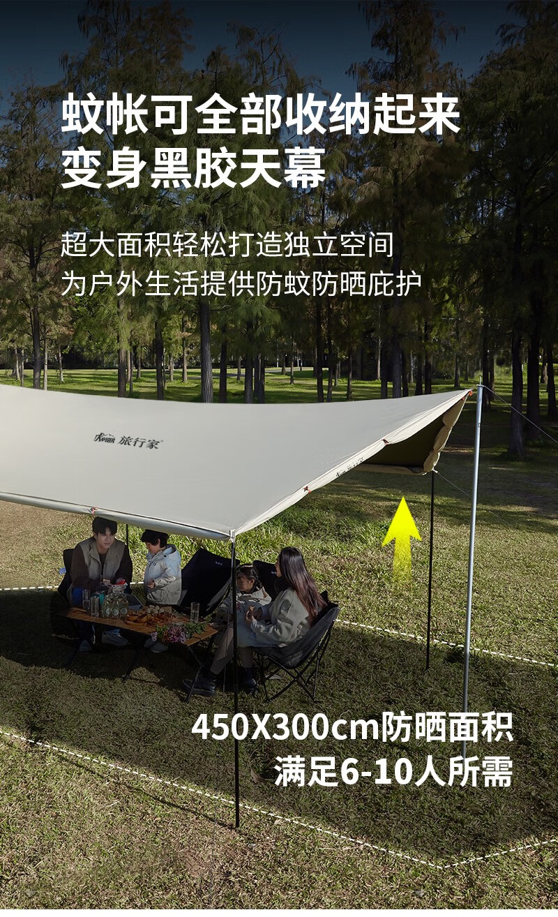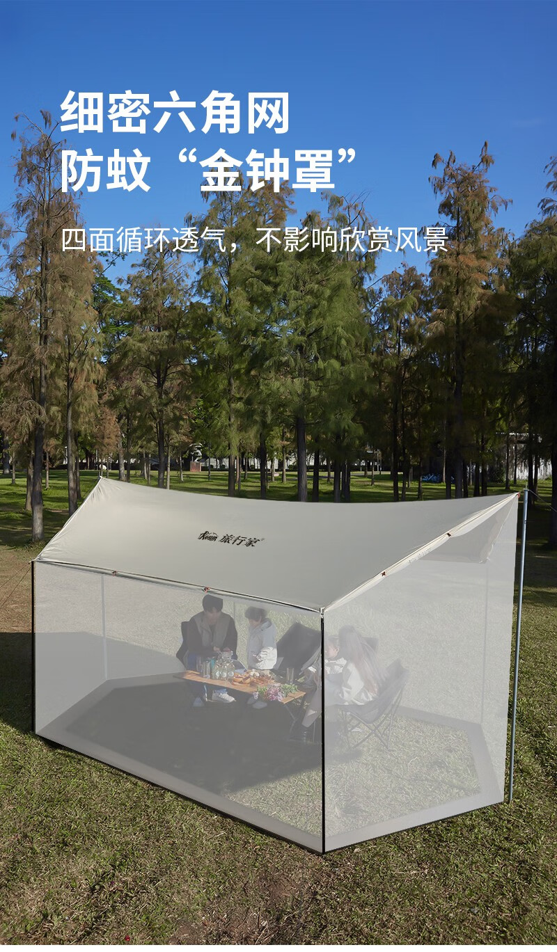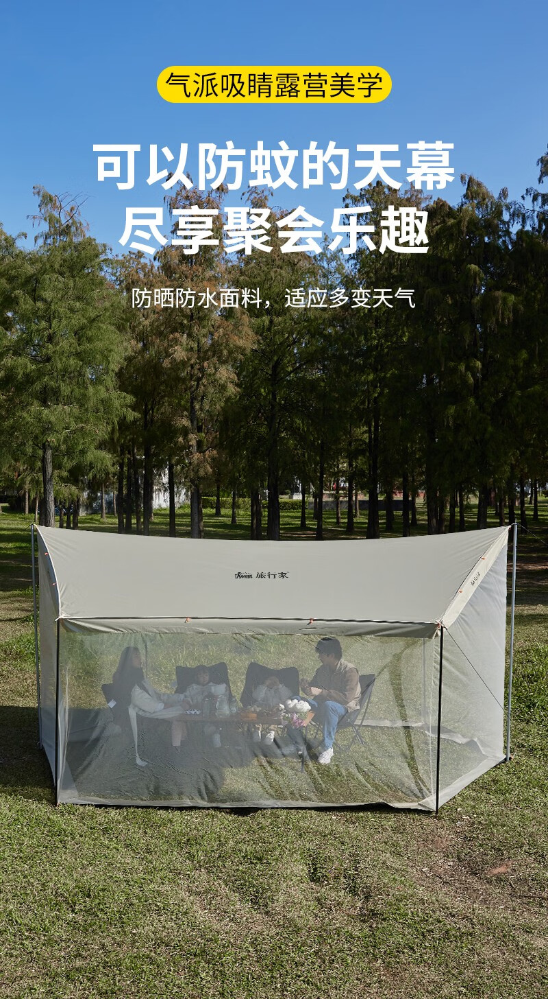 旅行家云亭防蚊黑胶天幕户外露营遮阳防晒防雨蚊帐帐篷野餐便携遮阳棚 卡其色(带蚊帐)