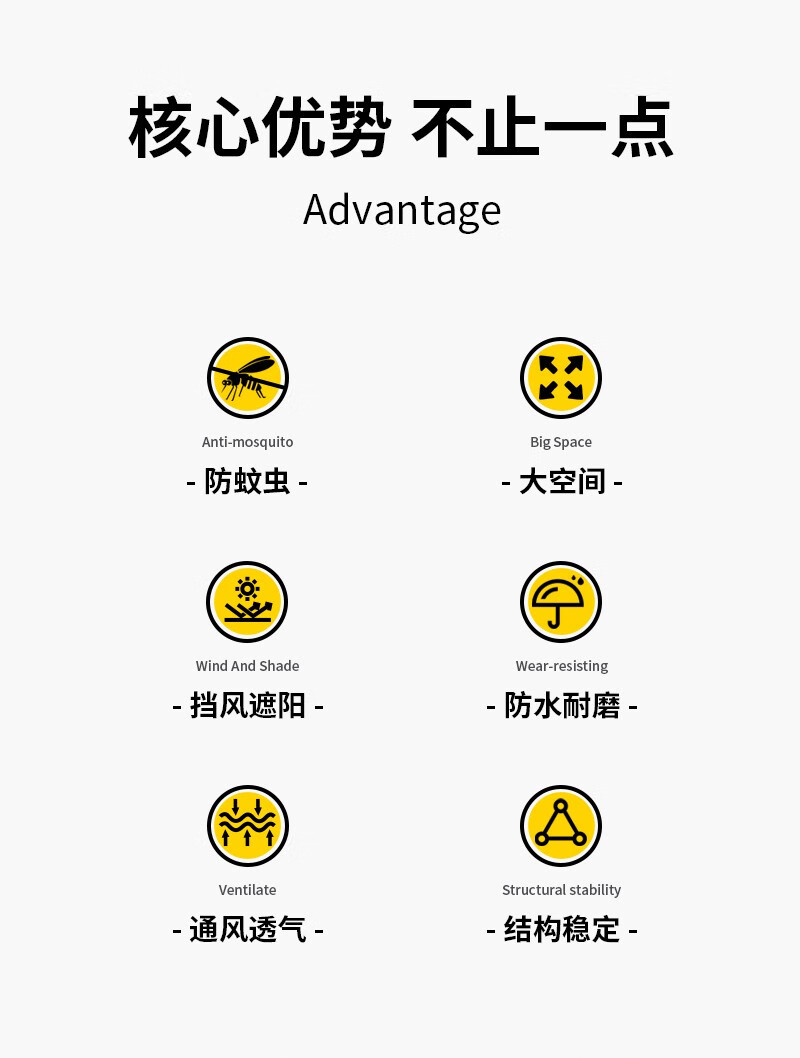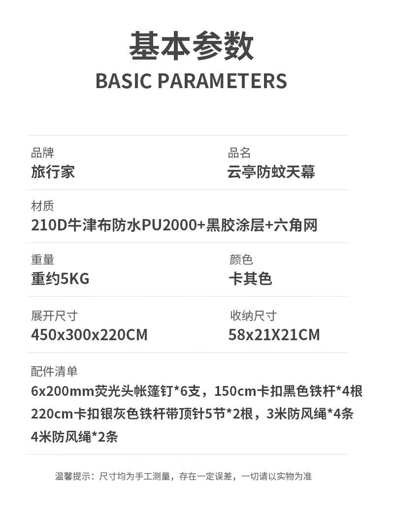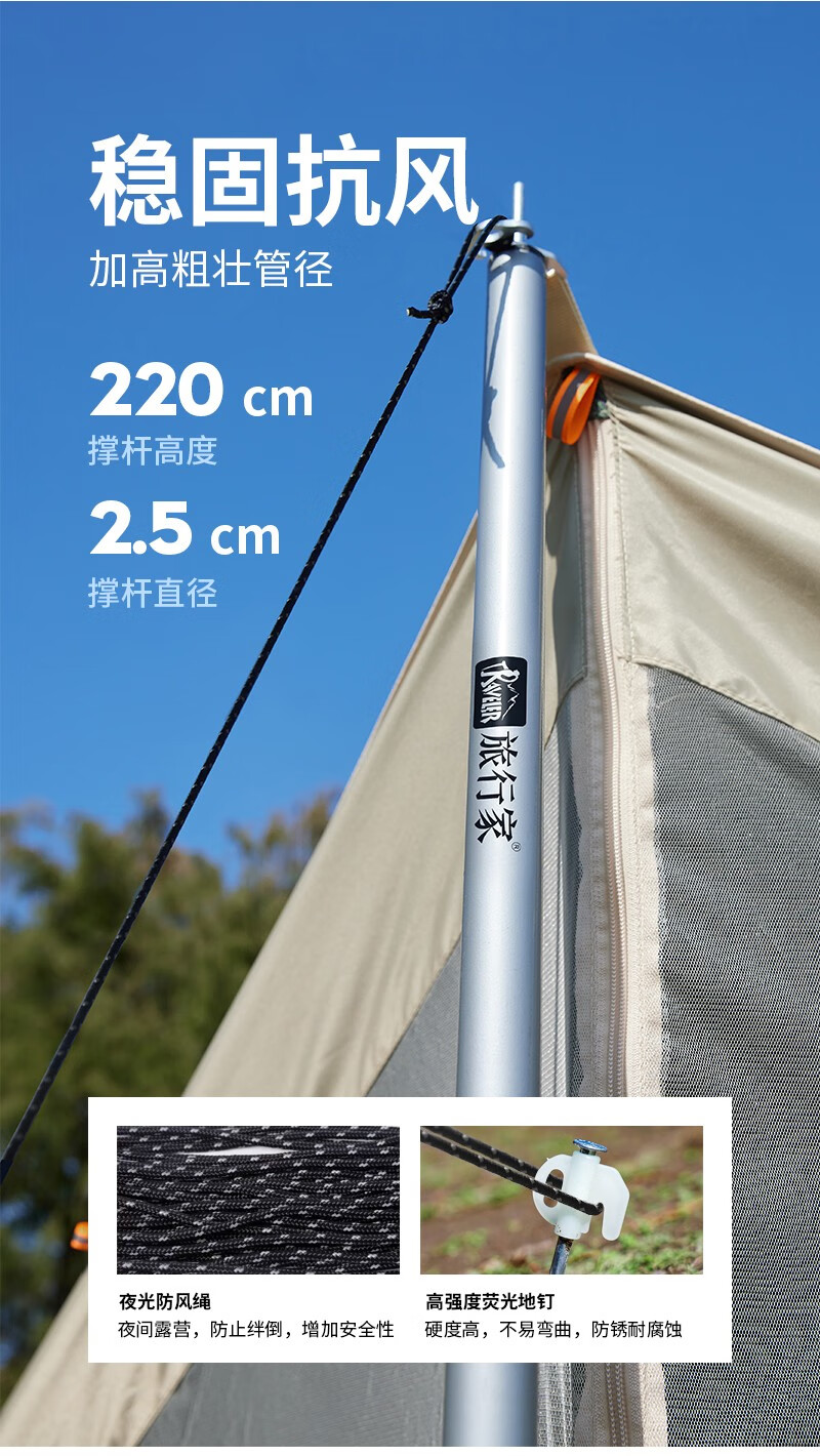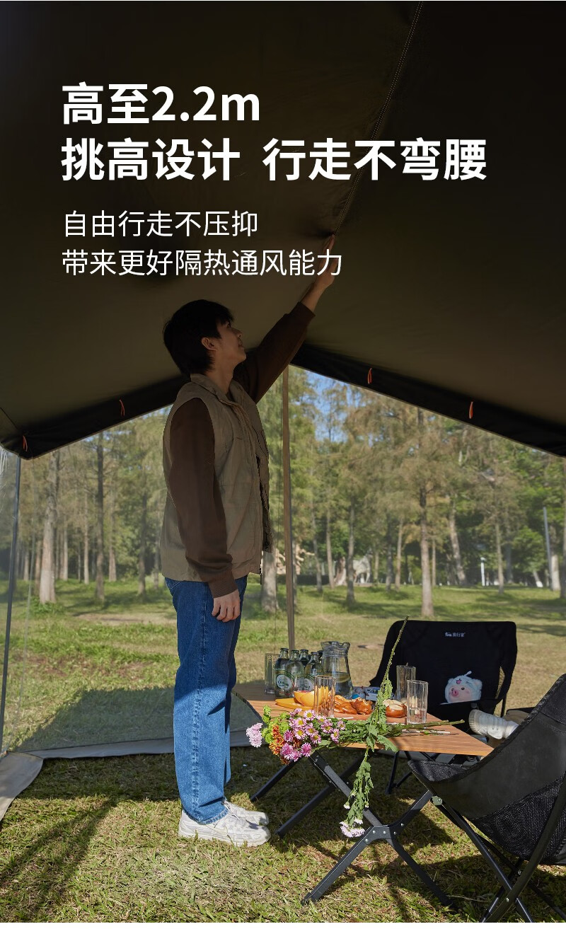 旅行家云亭防蚊黑胶天幕户外露营遮阳防晒防雨蚊帐帐篷野餐便携遮阳棚 卡其色(带蚊帐)