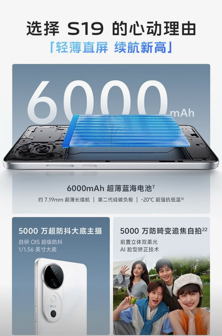 vivo S19 24期 免息 桃花扇 6000mAh超薄长续航 新品5G手机 桃花扇8GB+256GB 12期分期