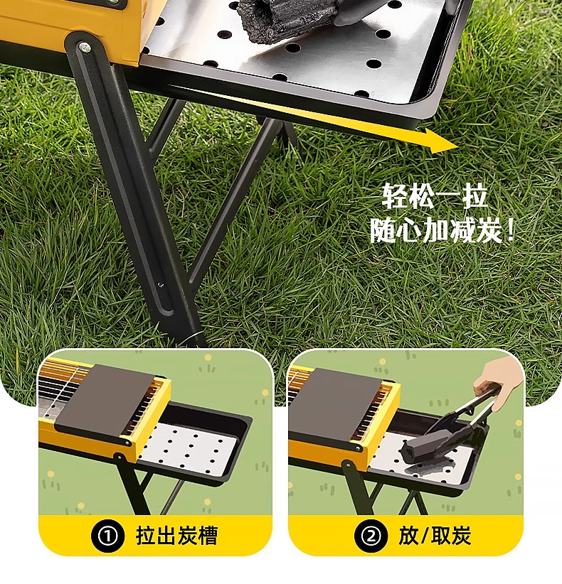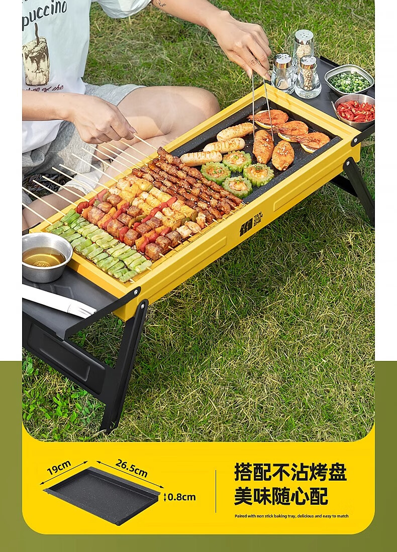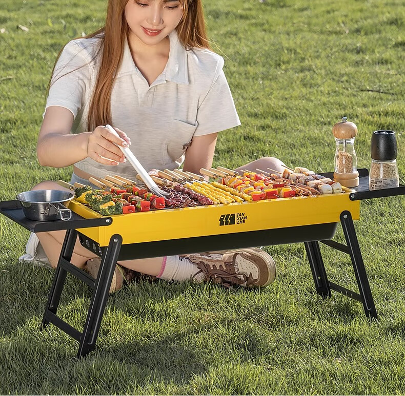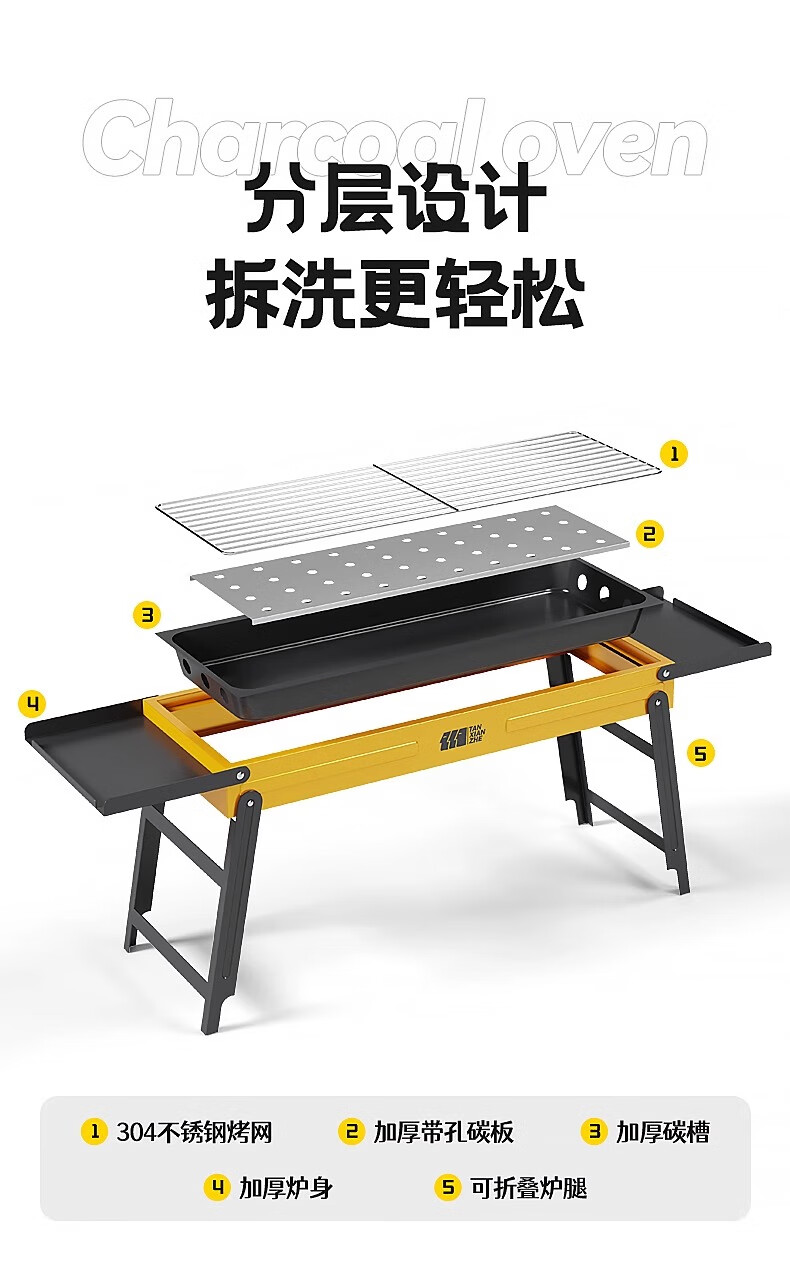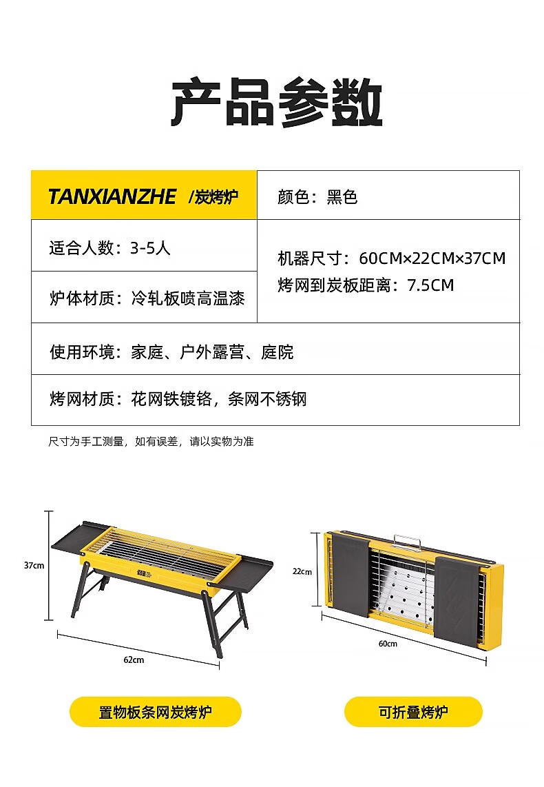 探险者烧烤炉户外碳烤炉露营野餐烧烤架子家用烤炉便捷式折叠烤肉炉 带翅膀侧拉烤炉12件套-304烤网