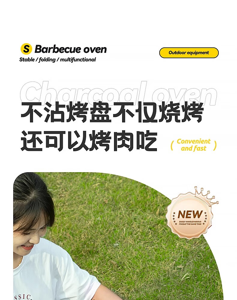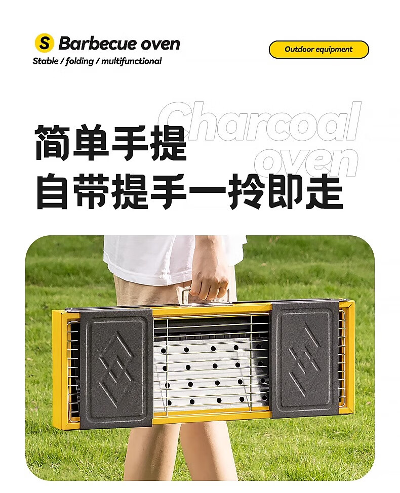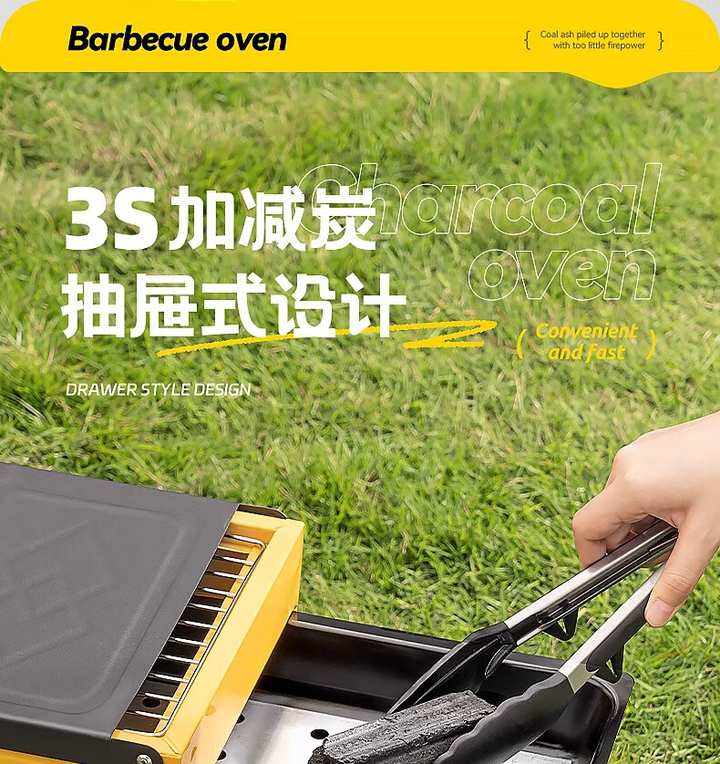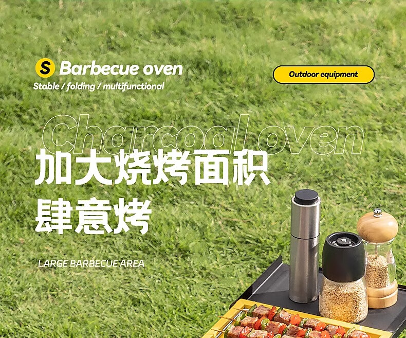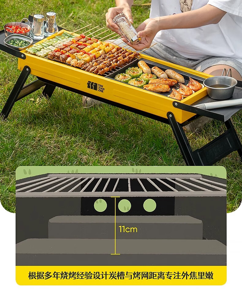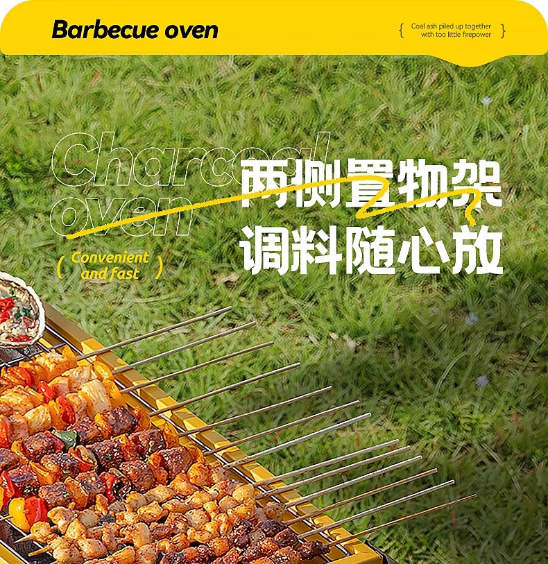 探险者烧烤炉户外碳烤炉露营野餐烧烤架子家用烤炉便捷式折叠烤肉炉 带翅膀侧拉烤炉12件套-304烤网