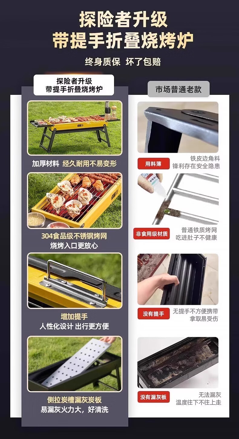 太薄了 妥妥的没有一点质感 我感觉炭火都能烧穿,用的少凑合着用还行