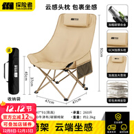 探险者户外折叠椅月亮椅便携式露营椅子钓鱼椅高靠背加厚躺椅家用小凳子 【加厚6cm头枕】卡其色高靠背椅