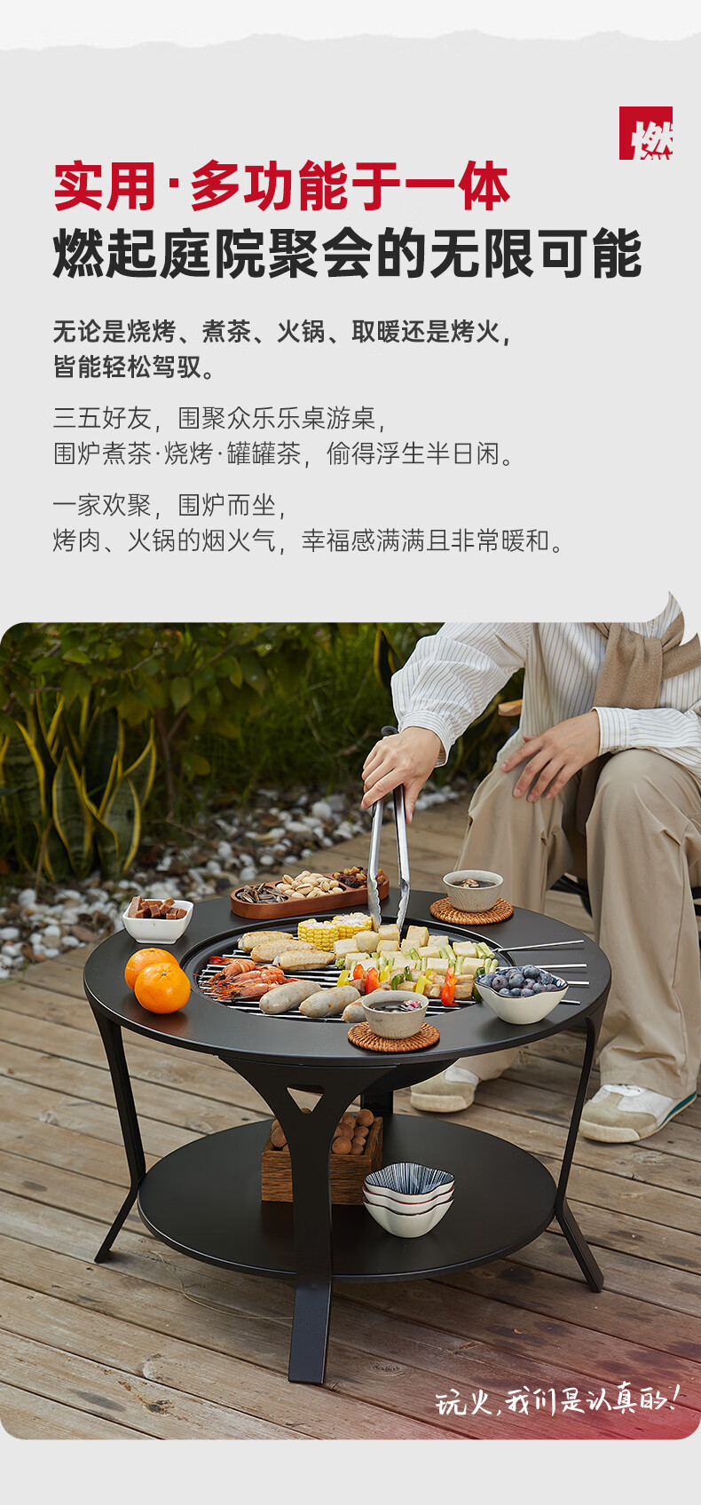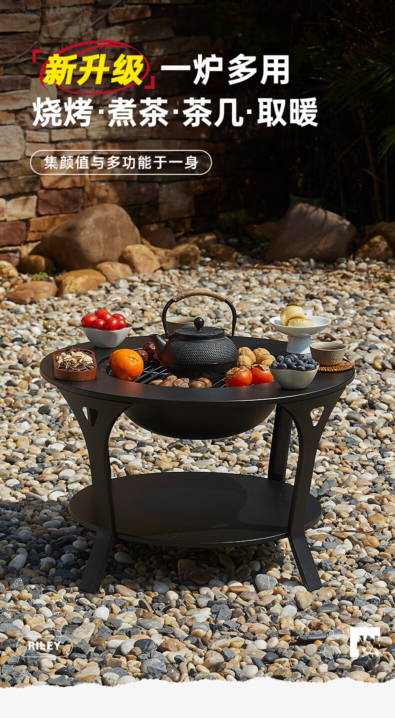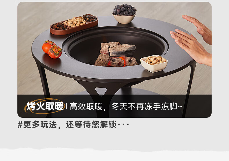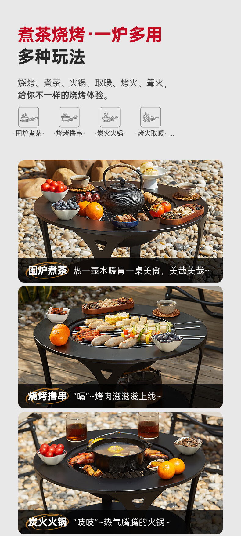 FIREPLUS室内烧烤围炉炭炉桌取暖炉烧烤茶罐围炉煮茶多功能围炉庭院烤火盆 围炉烧烤桌+6斤炭+铸铁壶