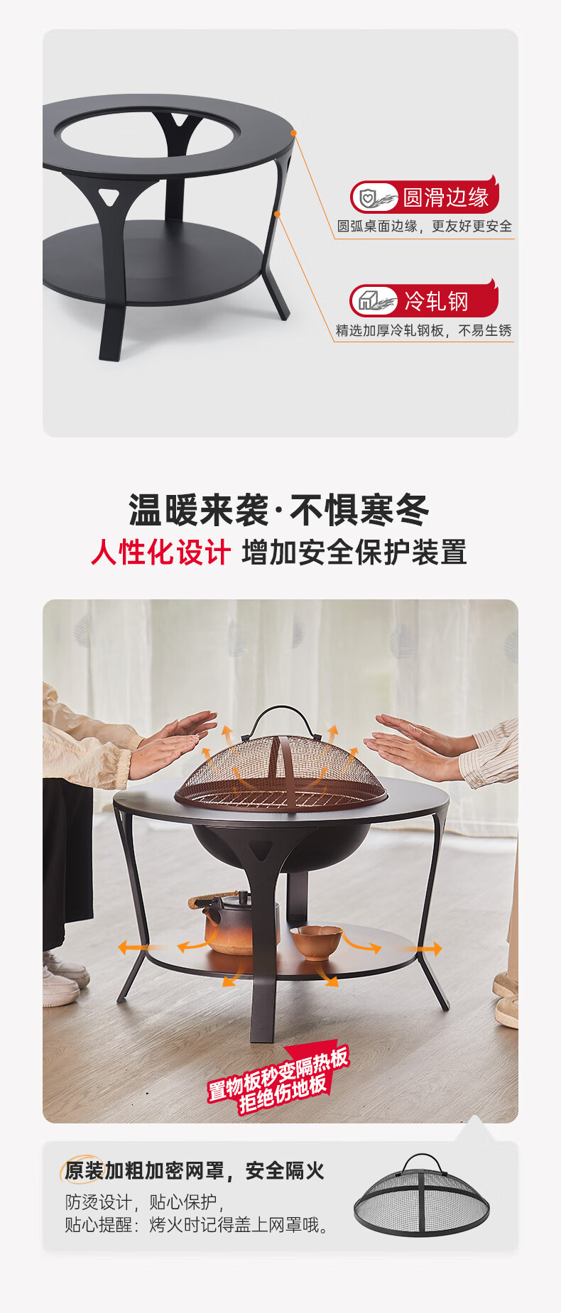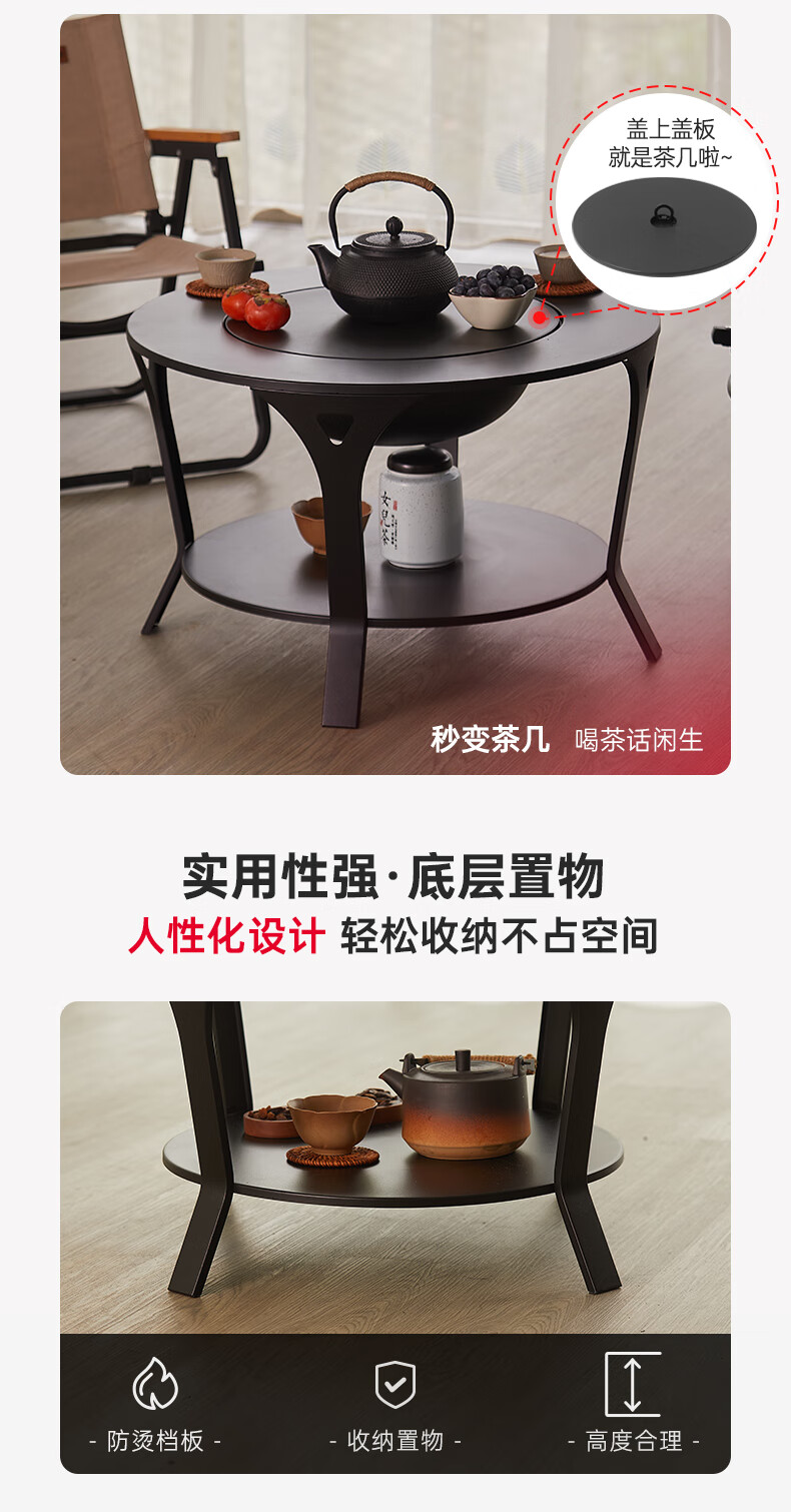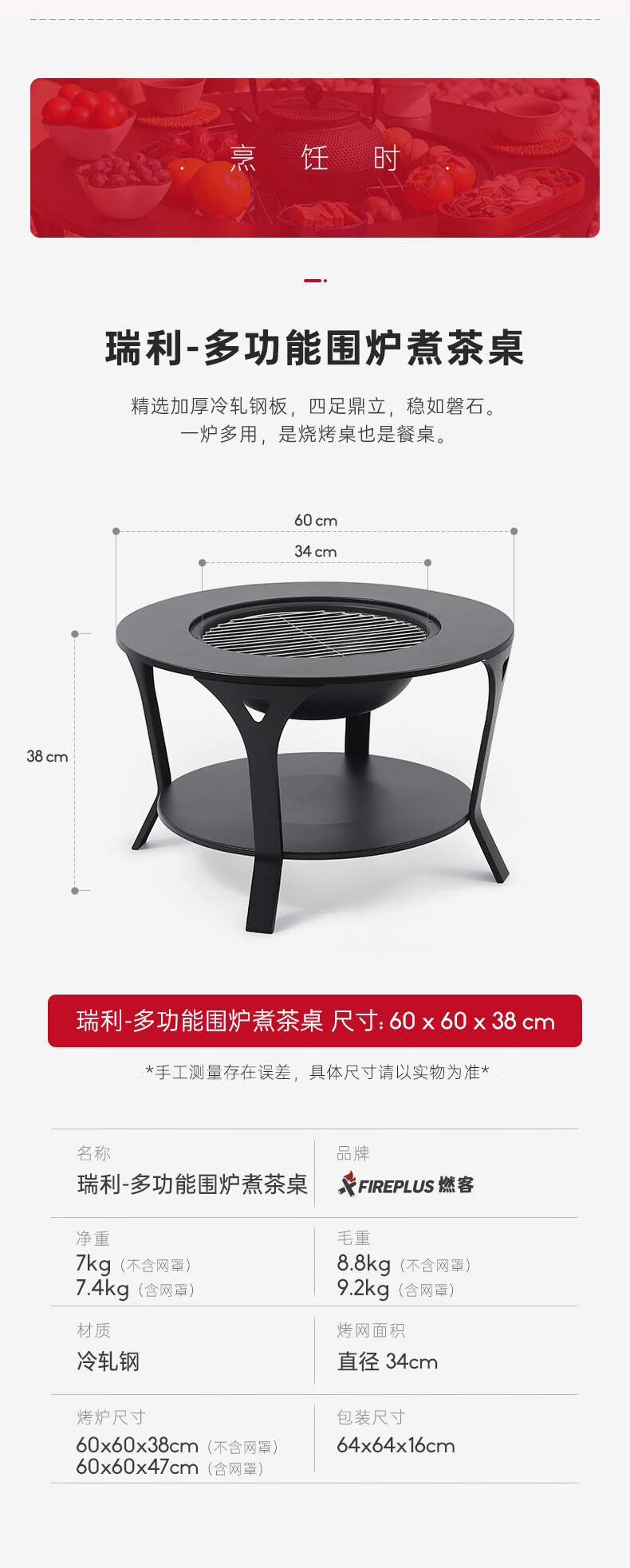 FIREPLUS室内烧烤围炉炭炉桌取暖炉烧烤茶罐围炉煮茶多功能围炉庭院烤火盆 围炉烧烤桌+6斤炭+铸铁壶
