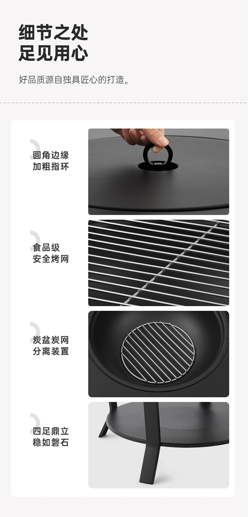抽屉式圆形炉体铸铁炭炉冬天围炉煮茶取暖火锅烧烤铸铁炉圈嵌入用 炉面直径36厘米可调火力双层炉炉高21