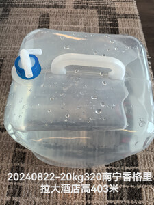 水桶特能装,全部装满的话怕搬不动了。20升可以供2人一天的使用,结实度也够,折叠起来又很小,便于携带。不用于野营在家也可以用来浇花或者洗车,还是很方便。
