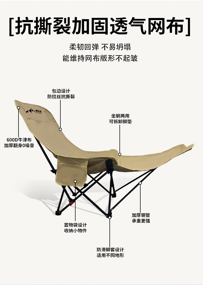 野徒者户外折叠椅露营椅子躺椅便携折叠月亮椅小凳子折叠凳钓鱼凳 90-60原木色【1-4人蛋卷桌】 可躺/睡觉