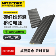 奈特科尔(NITECORE)碳纤维充电宝NB系列带3c认证大容量双向快充超薄便携户外移动电源 NB10000 GEN2 焕新版