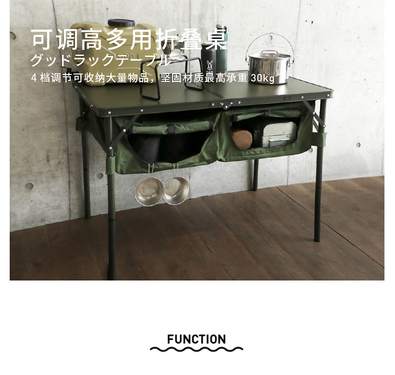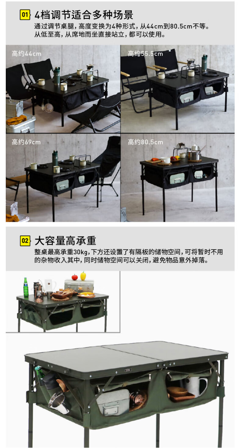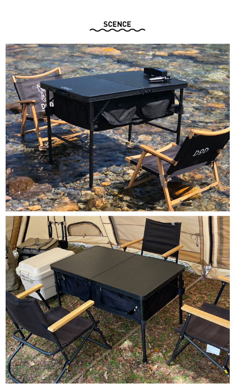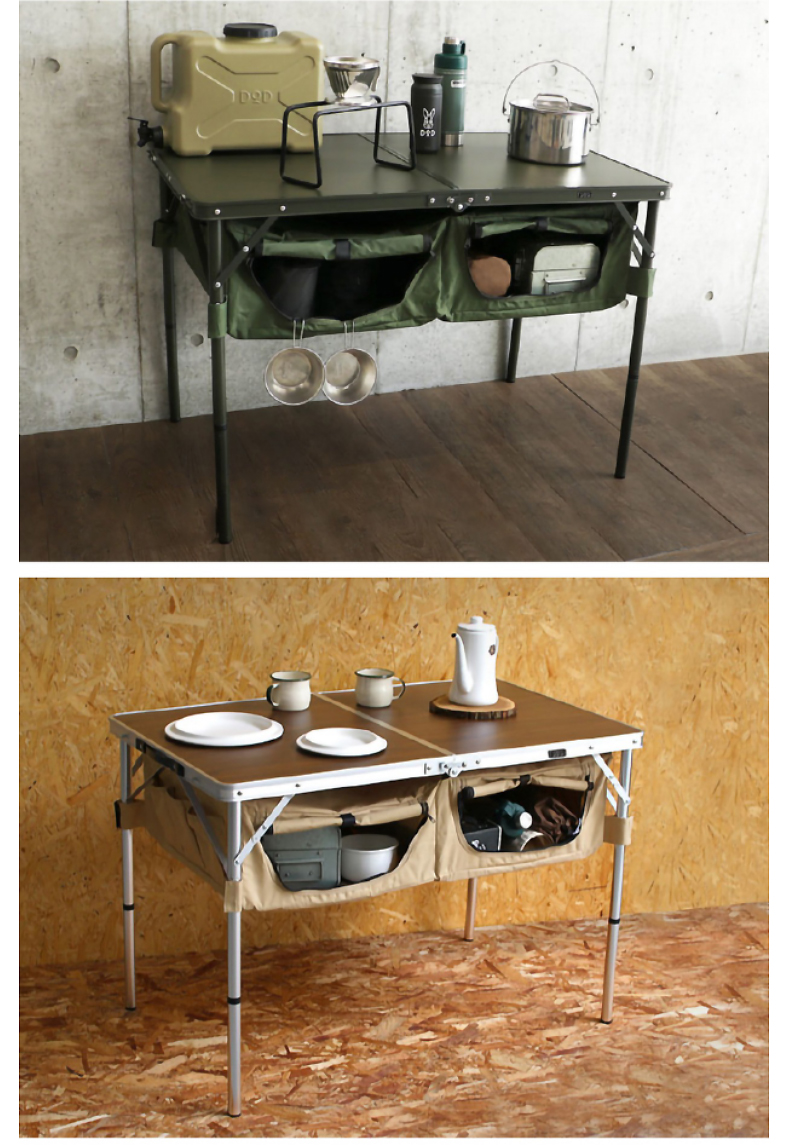 DOD 日本户外露营折叠储物多档调节高度多色多功能TB4-685KH收纳餐桌 军绿色TB4-685-KH