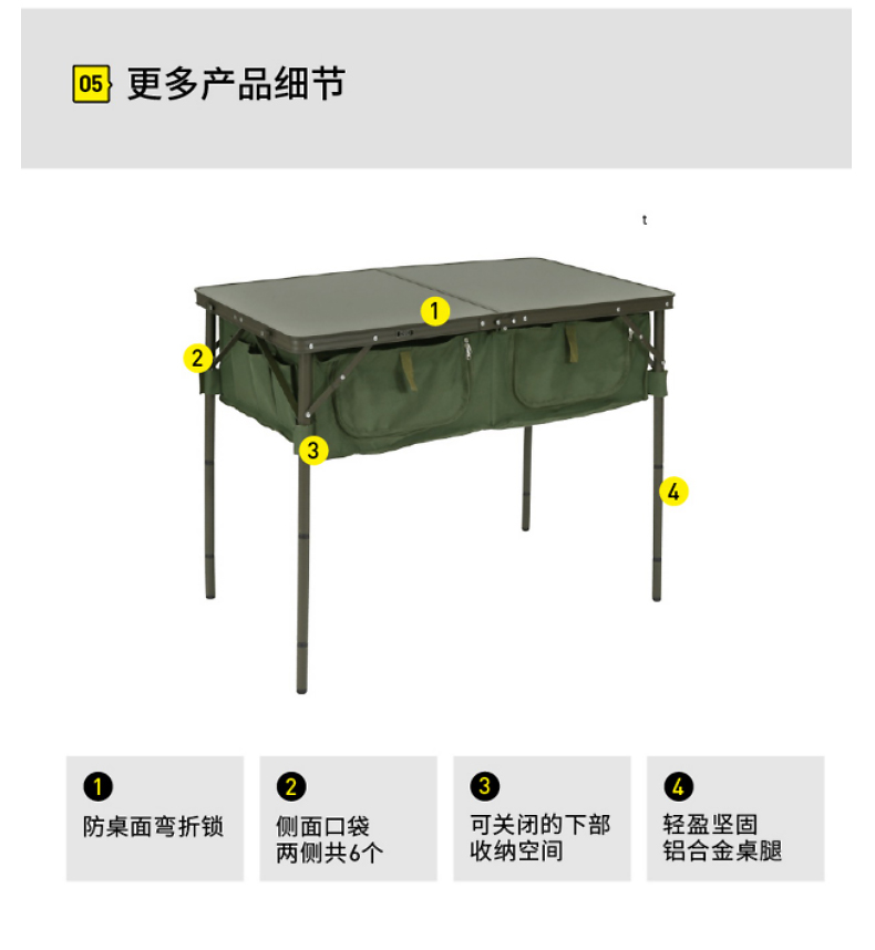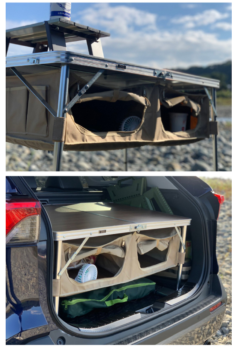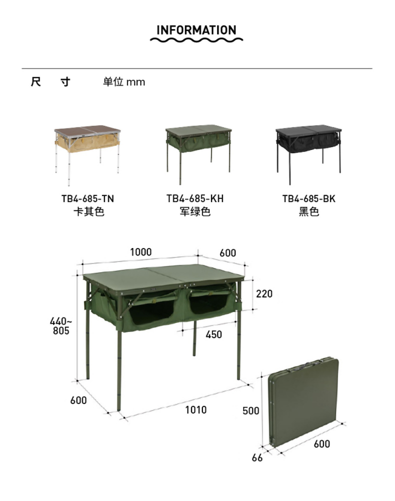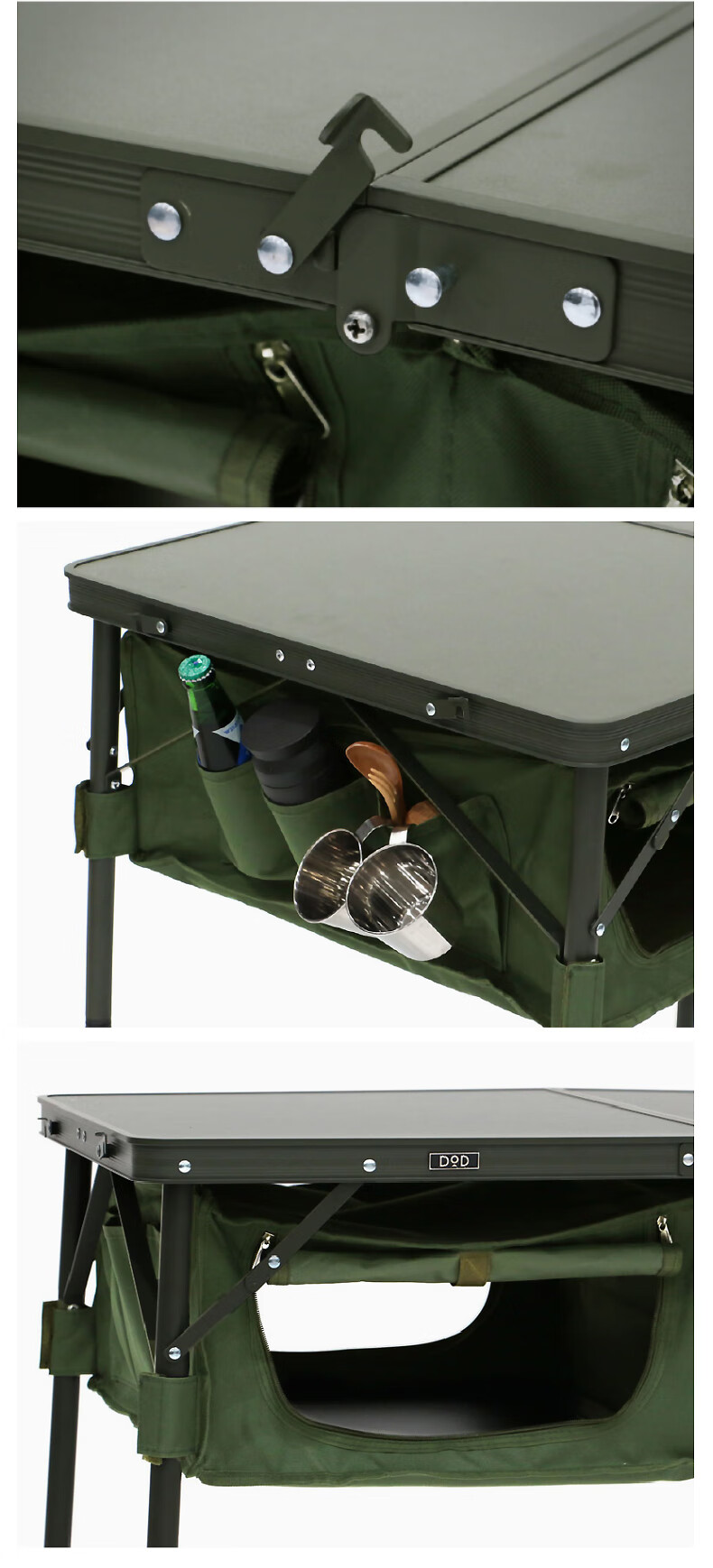 DOD 日本户外露营折叠储物多档调节高度多色多功能TB4-685KH收纳餐桌 军绿色TB4-685-KH