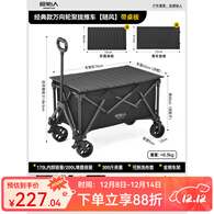 原始人户外露营折叠推车营地车手拉拖车野餐野营拖车遛娃便携买菜小拉车 200L 曜石黑-万向越野轮+桌板