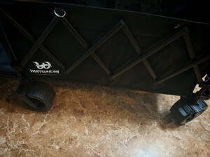 买来露营的,结果女儿摔骨折了,变成她的代步工具了,哎!这个户外露营车信价比之王,一拉一收非常便携,收起来放到后备箱一点也不占地方,还可以加长。巨能装,拉杆自动回弹,万向能丝滑无敌。