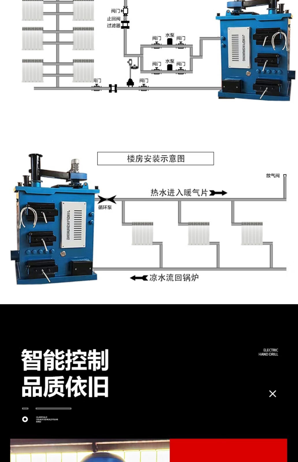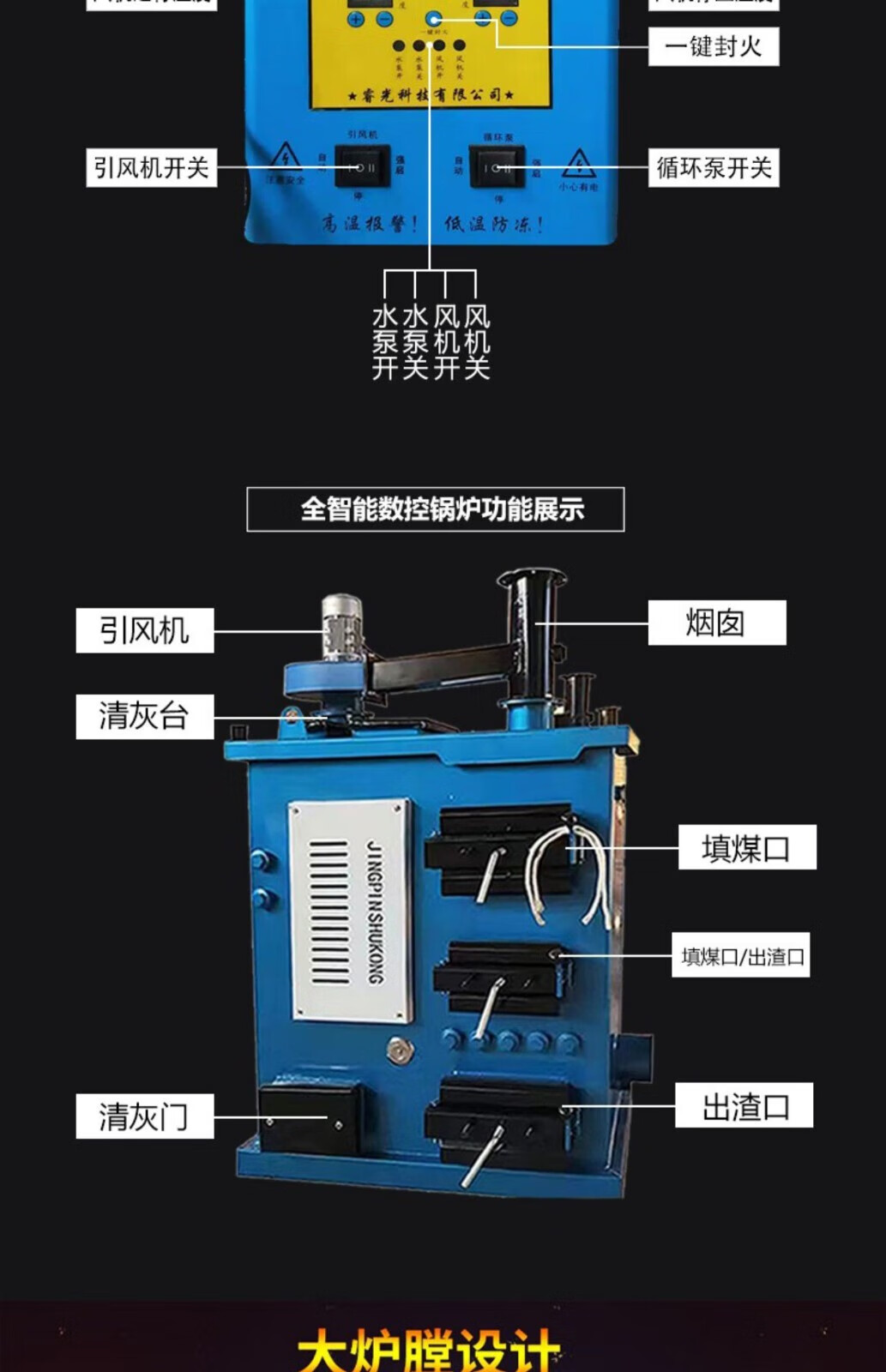 杰亚森(JieYaSen)燃煤取暖炉数控锅炉通炕节能农村小型锅炉家用烧煤电柴地暖暖气炉 400#数控锅炉【加厚+引风机】