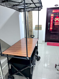 大号露营车摆摊车夜市小推车升降桌柠檬茶餐车营地野餐车聚拢折叠 车(黑)+120*60黑色桌+顶棚(黑)