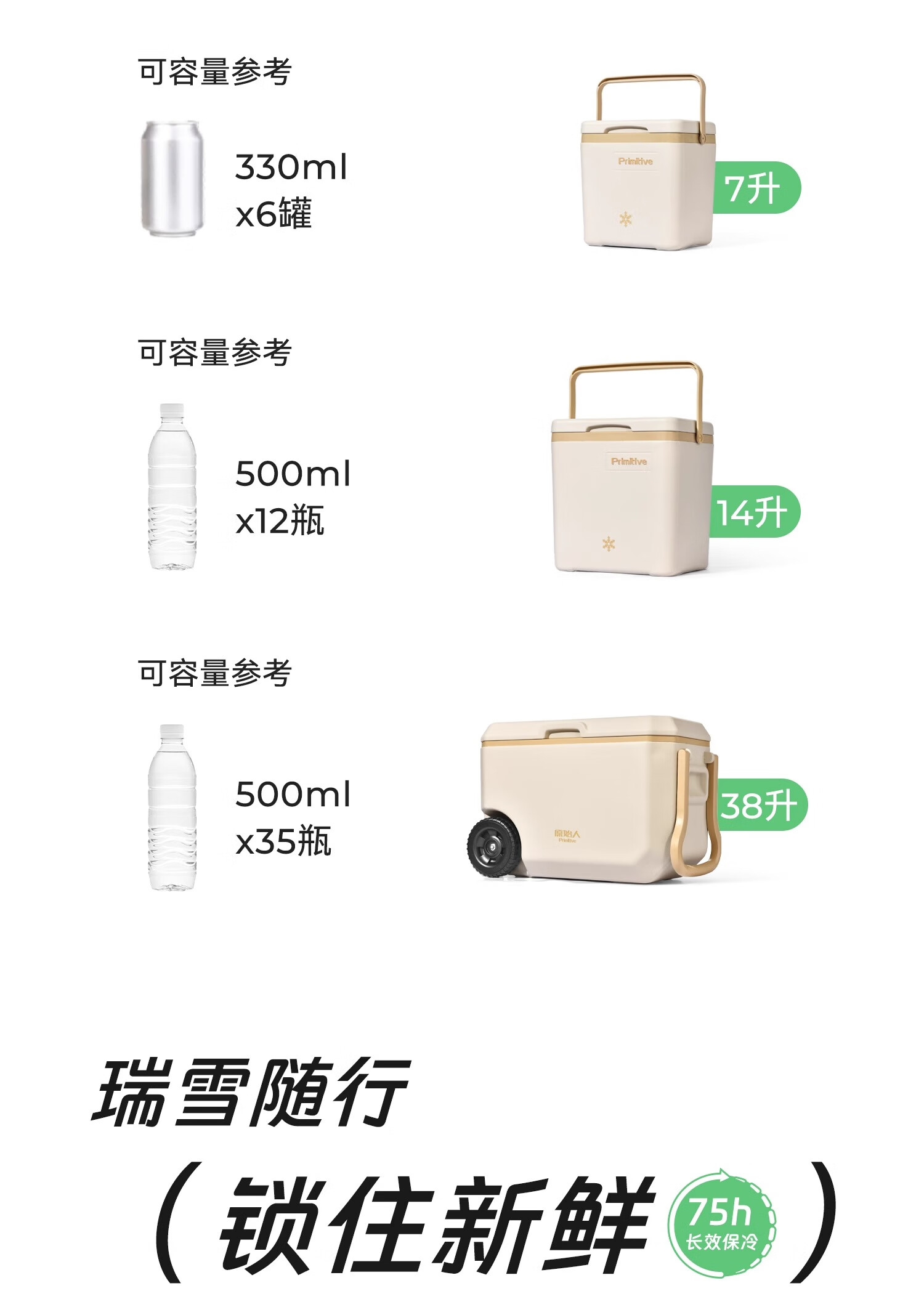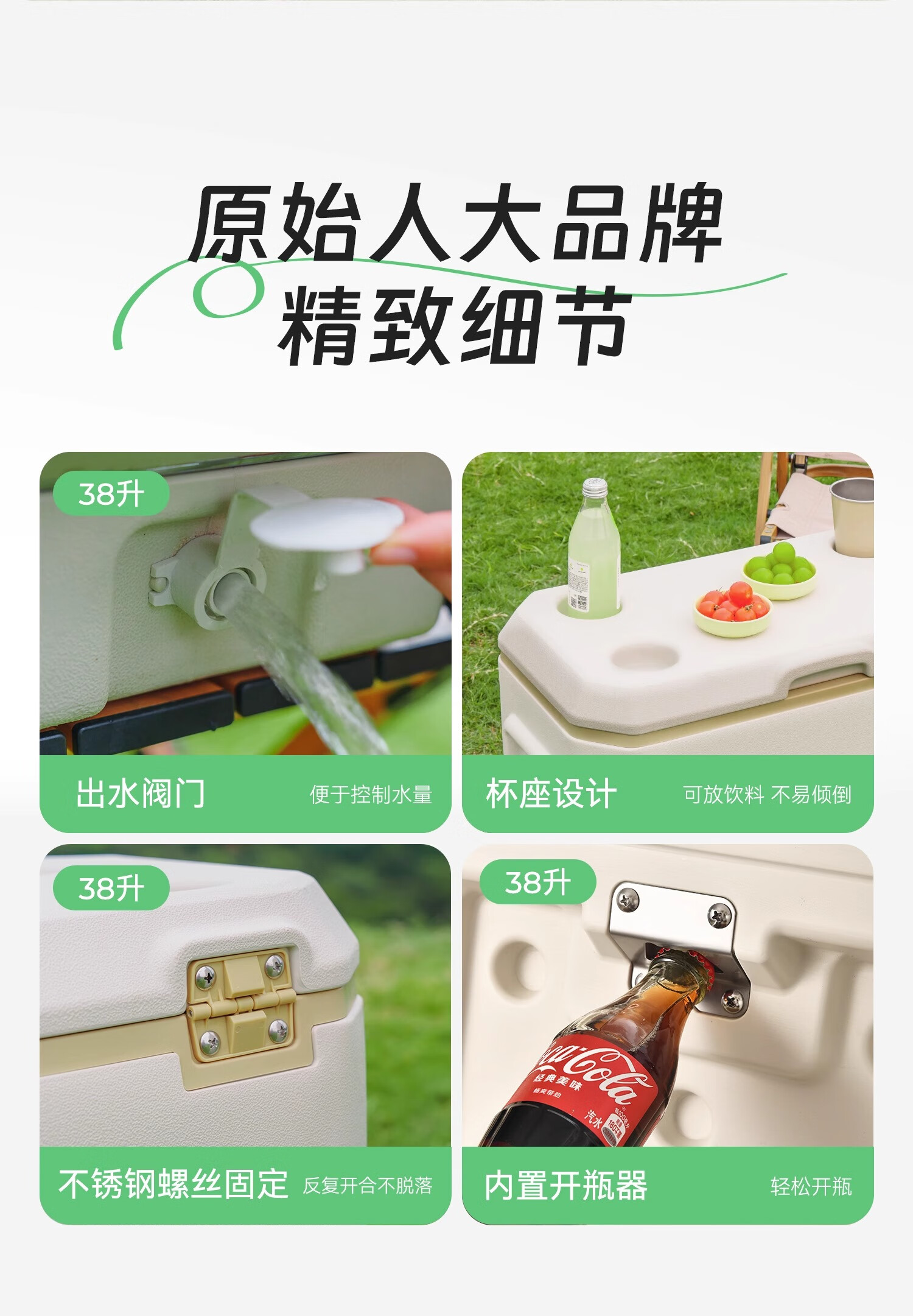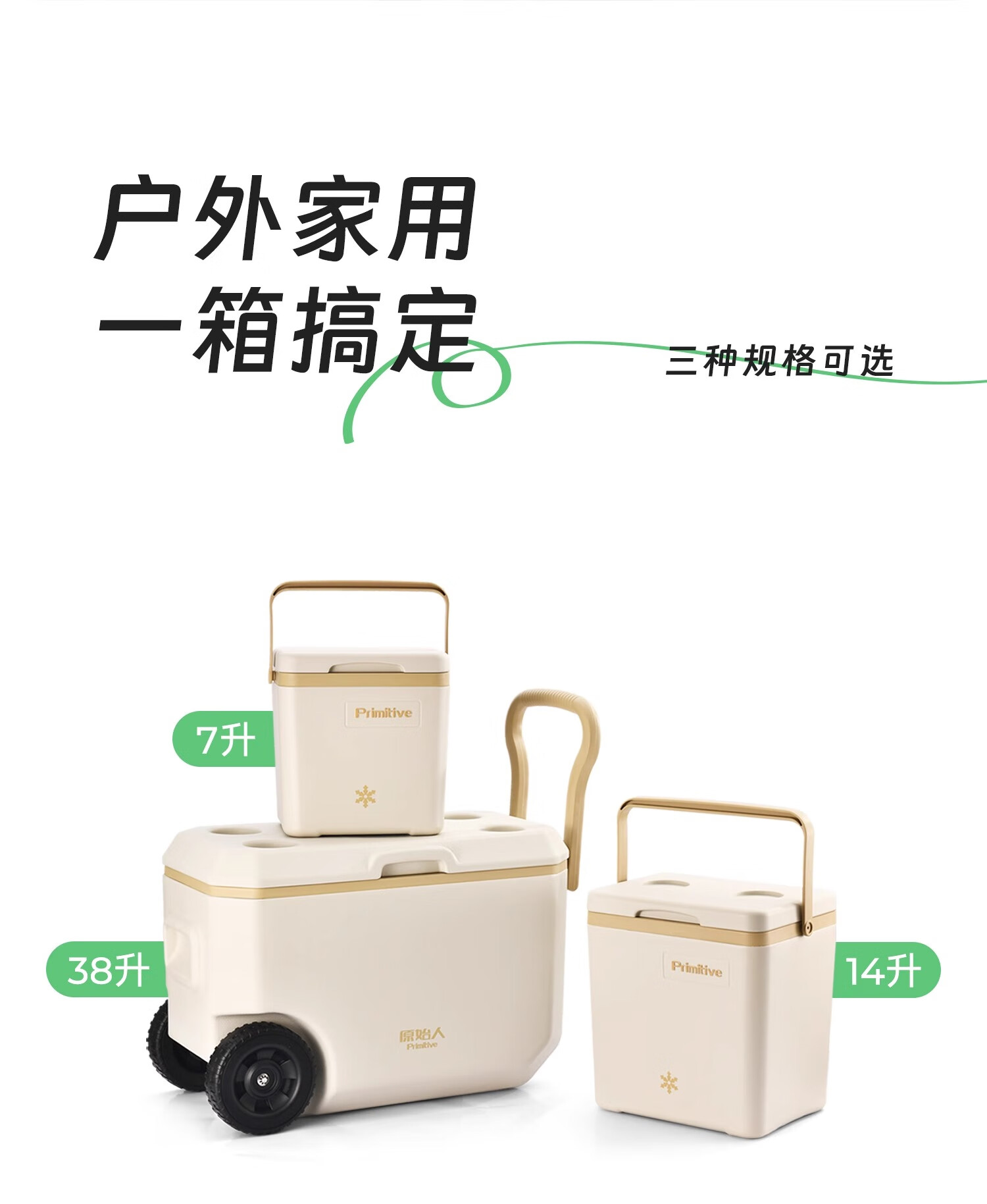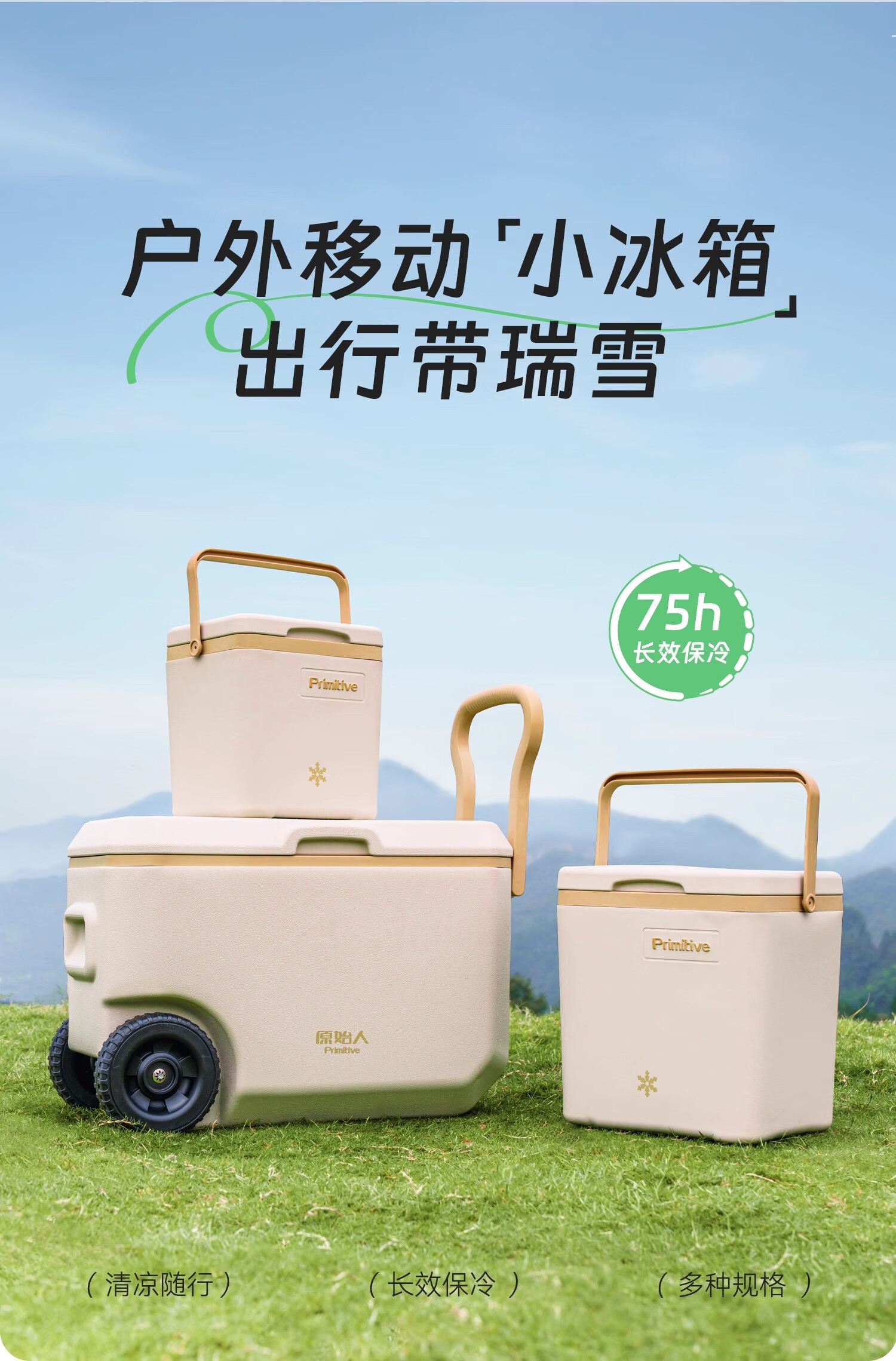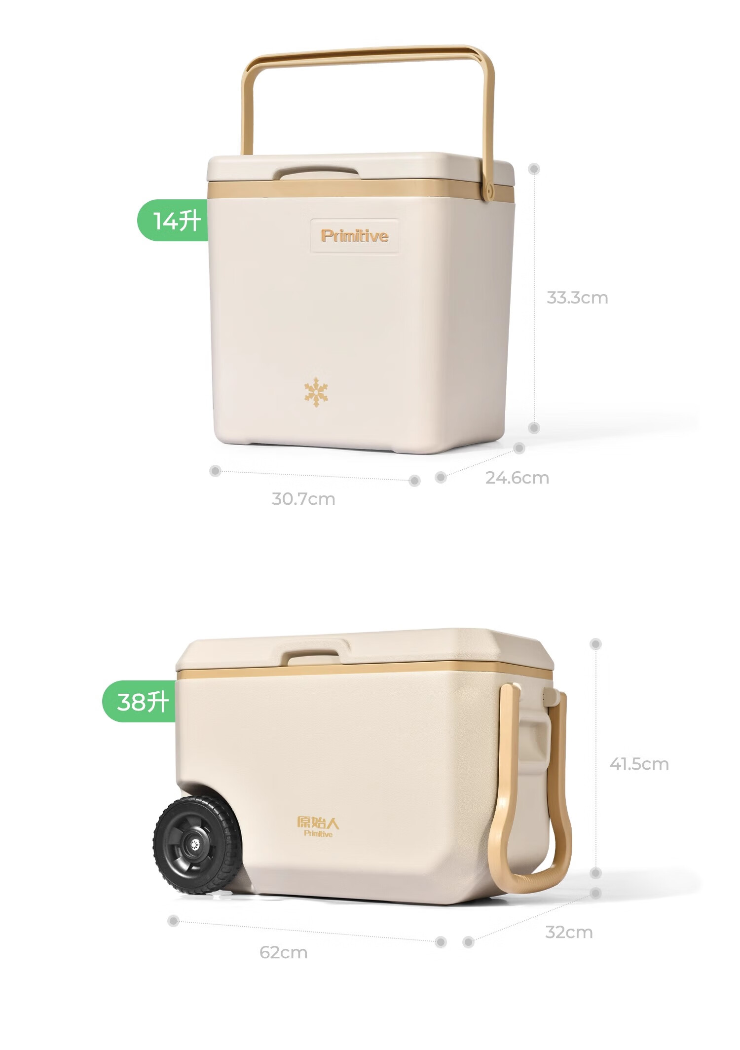 原始人冰块保温箱冷藏箱商用摆摊户外露营车载冰桶便携保冷小冰箱 14L款【配冰盒+冰袋*8】
