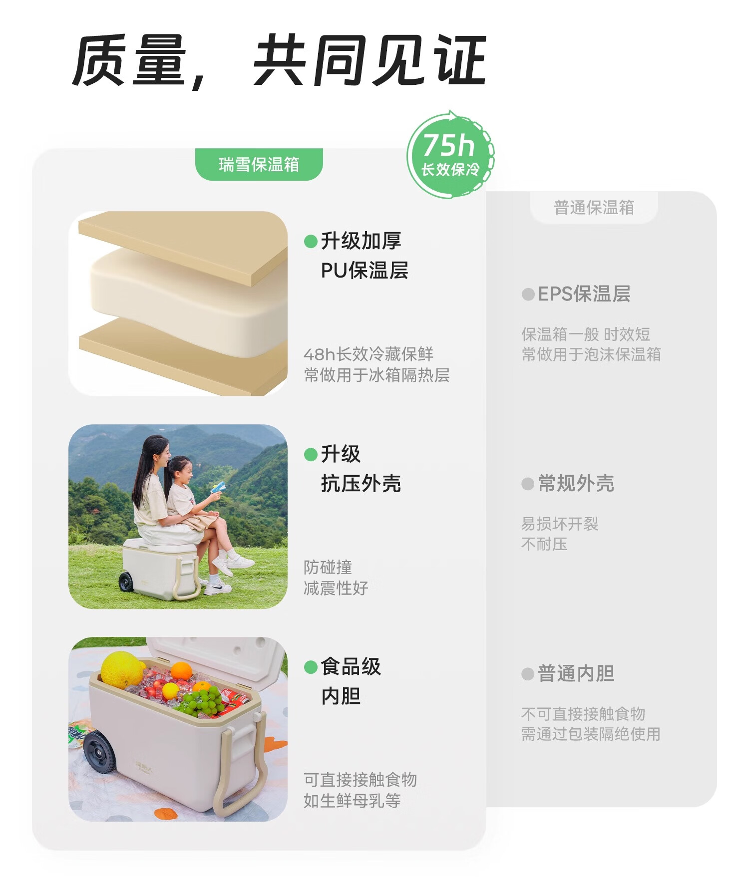 Naturehike挪客凌度24H抗菌保温箱 户外露营冷藏箱野餐食品保鲜箱车载冰桶 米灰色13L