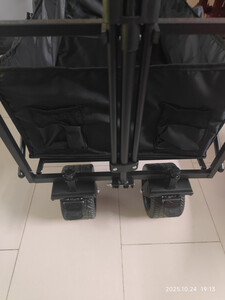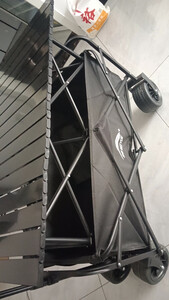 这款露营车超出心理预期了。首先车架车身特别结实,满满的安全感。把手可以自动回弹,避免弯腰。车轮子很宽,可以轻松应对各种地形。我买来当小摊车用,如果后架固定,可以铺上桌子之后,再后开就更完美了。