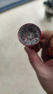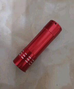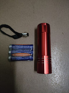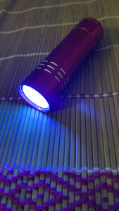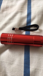 这款紫光灯很快收到了,物流速度快。这款灯有如下特点:小巧便携,9个LED亮度高,3个7号电池供电,相比钮扣电池的紫光灯,工作时间长。可用于带有荧光剂物品的检测,应用较广。就是知道耐用否!