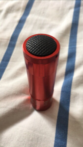 买来照高达的。外壳是金属而且有一种3D打印的纹路感。的用电池,开关按起来也很舒服大小正合适。店家送了三节电池。个人是比较喜欢用电池的因为不用担心电池寿命