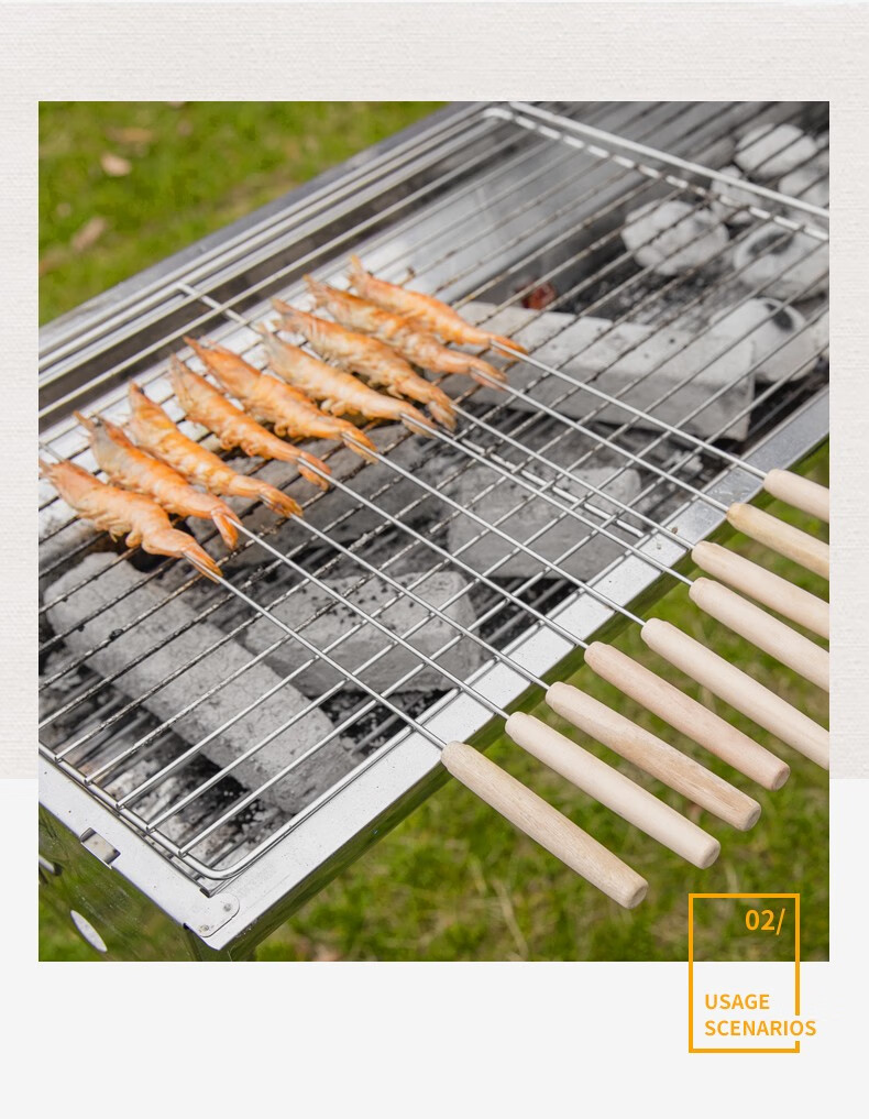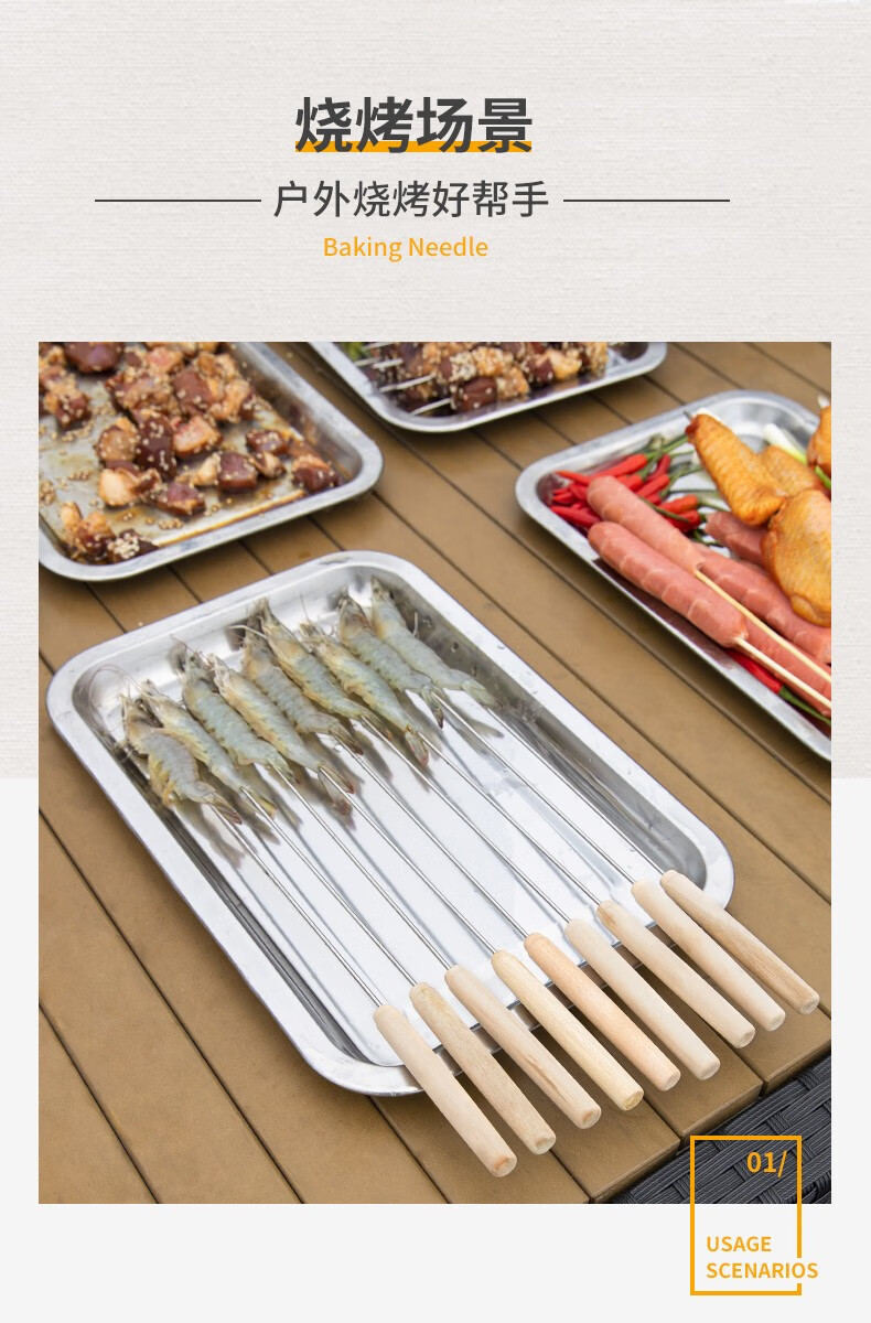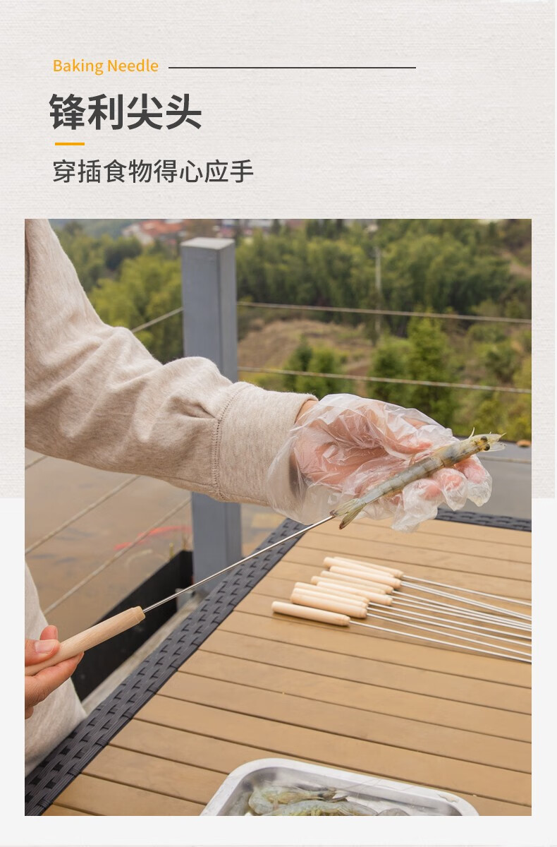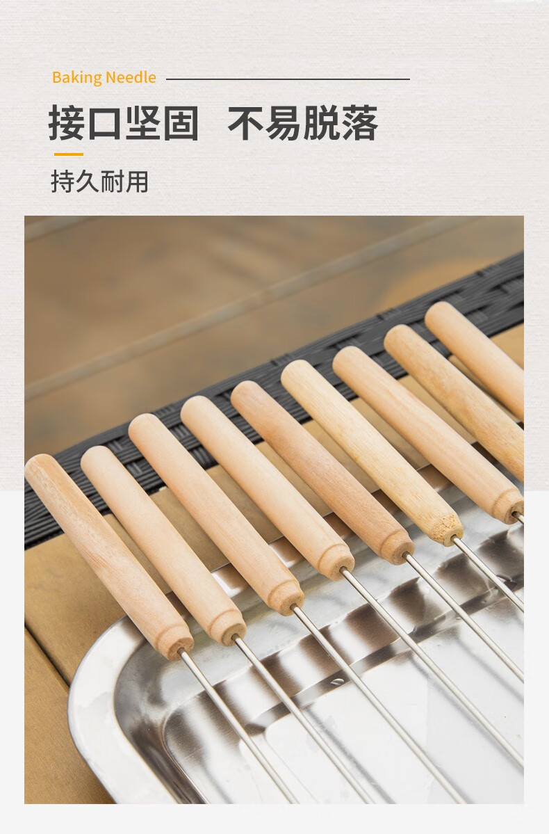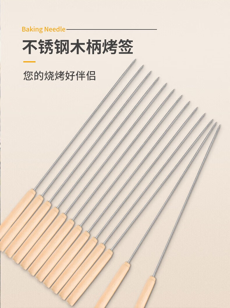 原始人 木柄防烫手烤肉签子烧烤签 烧烤工具烧烤配件 12只装