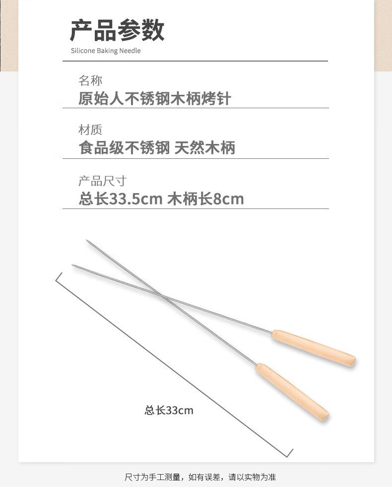 原始人木柄烧烤签子不锈钢羊肉串烤肉烤串工具钢扁签铁签字针用品 长33.5cm*宽4mm*厚1mm 40支